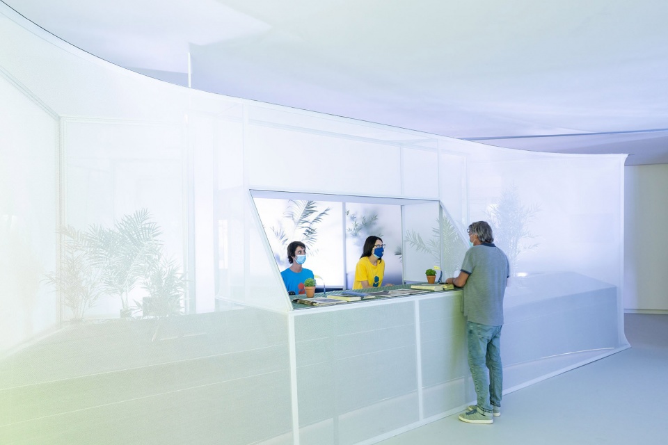 The installation is complemented by a series of screens, objects, art-carts, and seatings, that can be rearranged on an as need basis, producing an ever-evolving organization.
