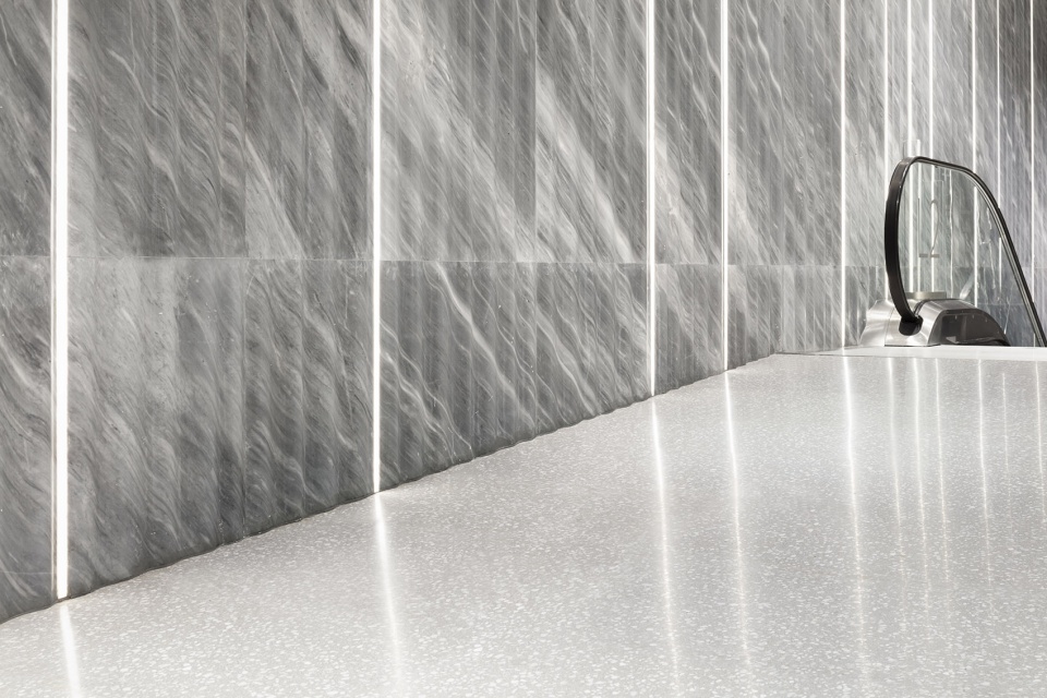 从让人联想到钢琴键盘的美食广场,到以聚光灯为主要元素的生活用品店楼层,室内设计中充满了各种与剧院有关的元素。最后,项目团队还设计了内部空间的标识系统,其图案借鉴了演出开始时幕布打开的场景。