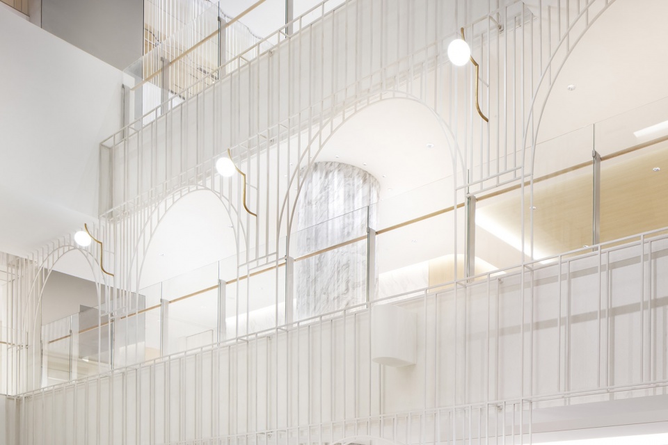 这些基本的功能空间被重新组织起来,形成了剧场般的空间氛围。从售票处到门厅再到楼上的空间,场景的转换也与剧院的设计极为相似。通过有意地对结构进行分层,顾客们的视野也被吸引到场地中央,仿佛是从剧院看台望向舞台一般。购物者们扮演着观众的角色,将各种品牌、产品和活动收入眼底;与此同时,他们也作为室内元素的一部分,在舞台上进行着自己的“表演”。