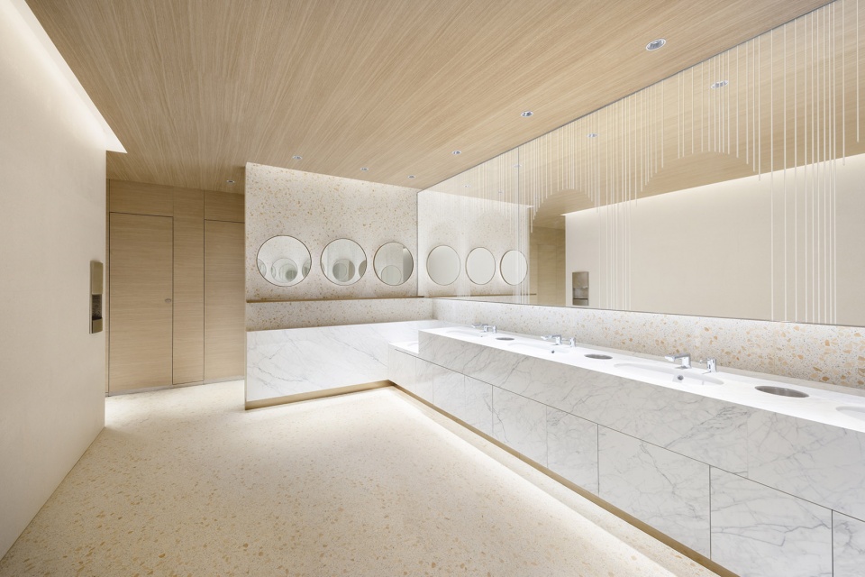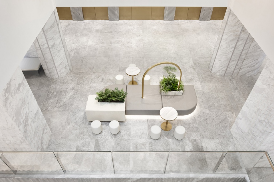 既有的建筑结构经历了多次重建和扩建,因此形成了曲折繁杂的交通空间,严重影响了建筑内部视野的通透性。虽然建筑中包含多个中庭空间,但其井一般的形状很难让人感受到楼层之间的联系。对此,建筑团队将首层的中央通道“拉直”并移动了扶梯的位置,让通往楼上的路径变得更加顺畅,从而提高了购物体验的连贯性。重新布局的中庭通过交通动线的微妙变化让视野由下至上层层展开,将顾客们的注意力引向顶部楼层。