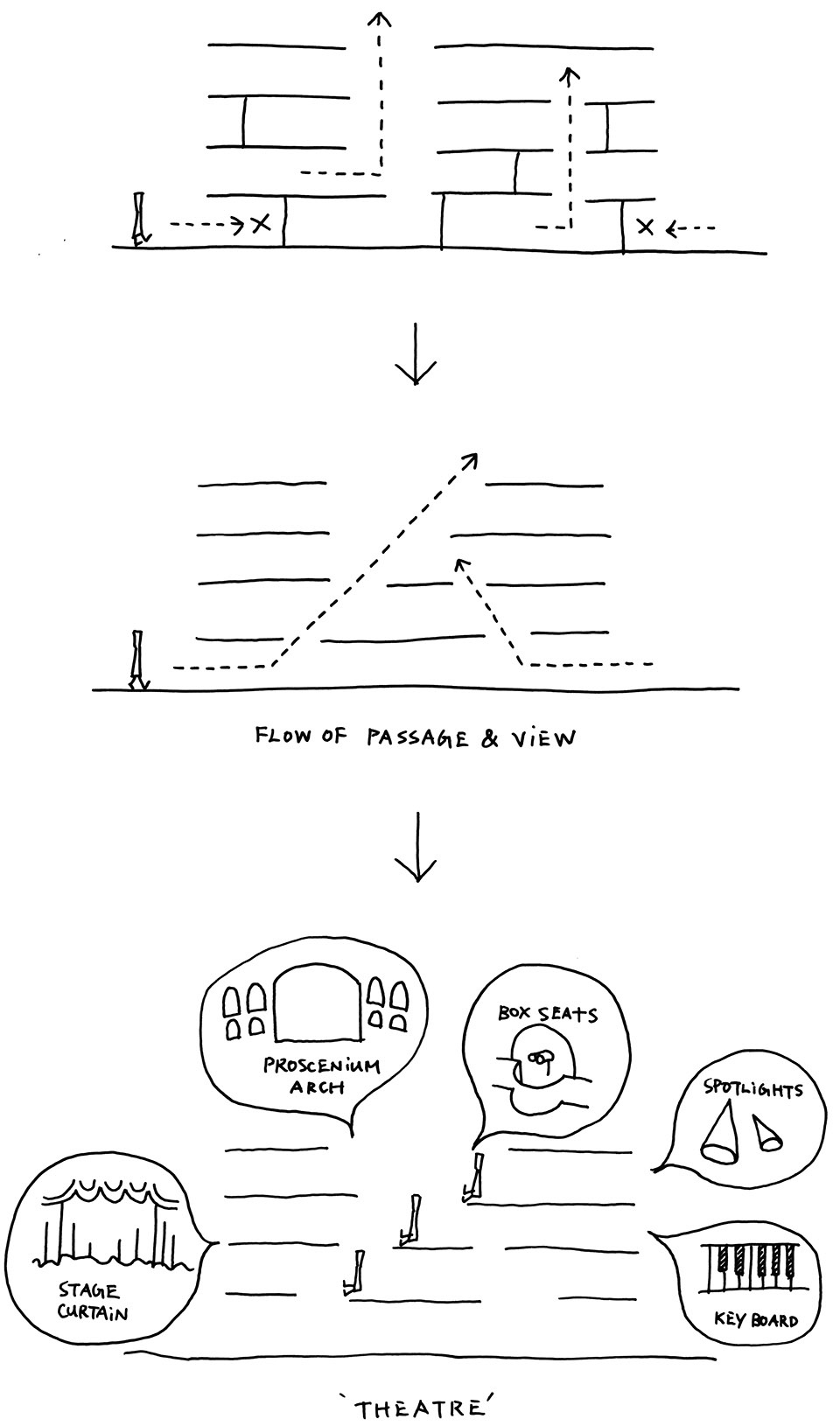 ▼场景的转换仿照了剧院的设计,a spatial configuration resembling a theater ©Takumi Ota