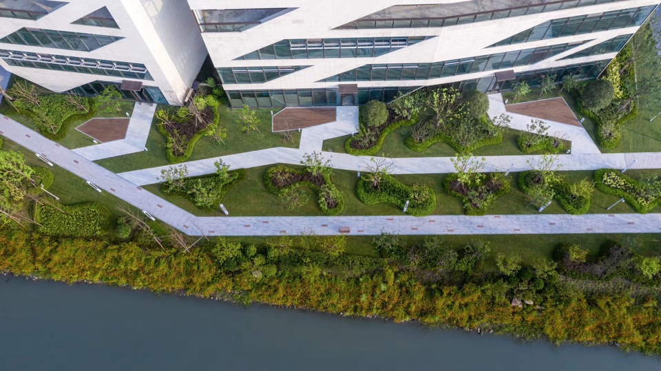 ▼南侧俯视沿河景观,aerial view of the project from the southern side along the river ©汤寒阳