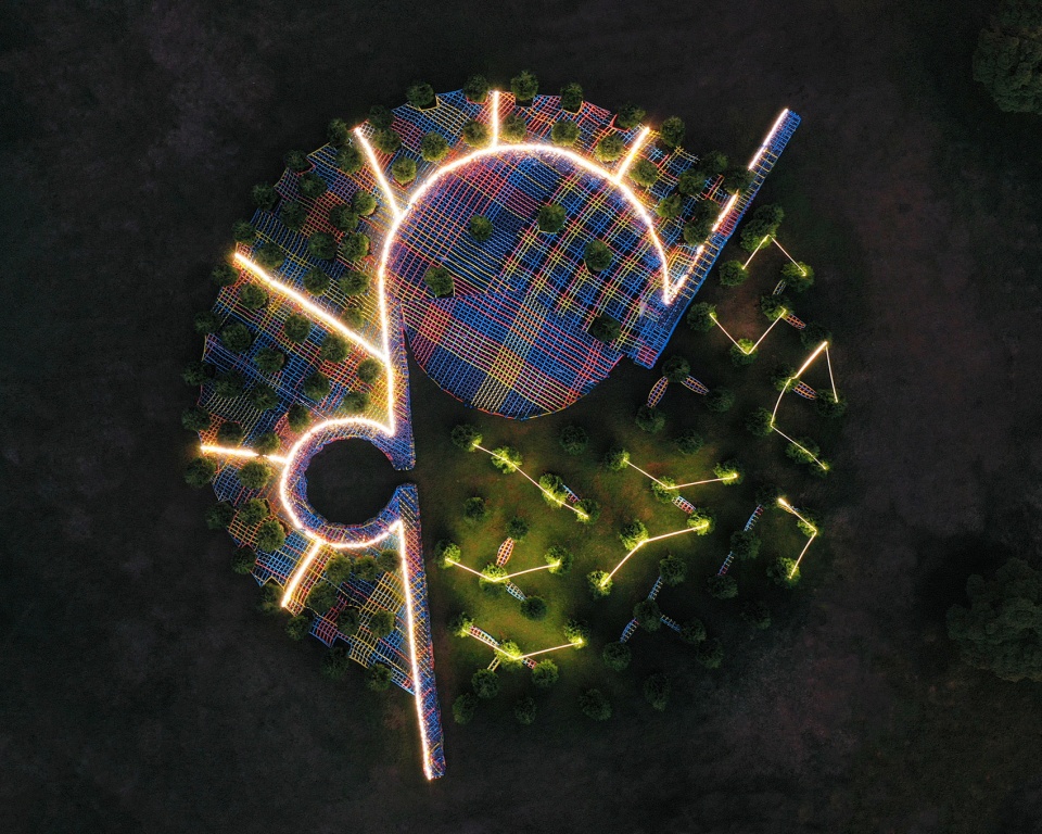 ▼夜晚时装置的灯光效果,the light effect of the installation at night © Spirit of Space, courtesy of Exhibit Columbus