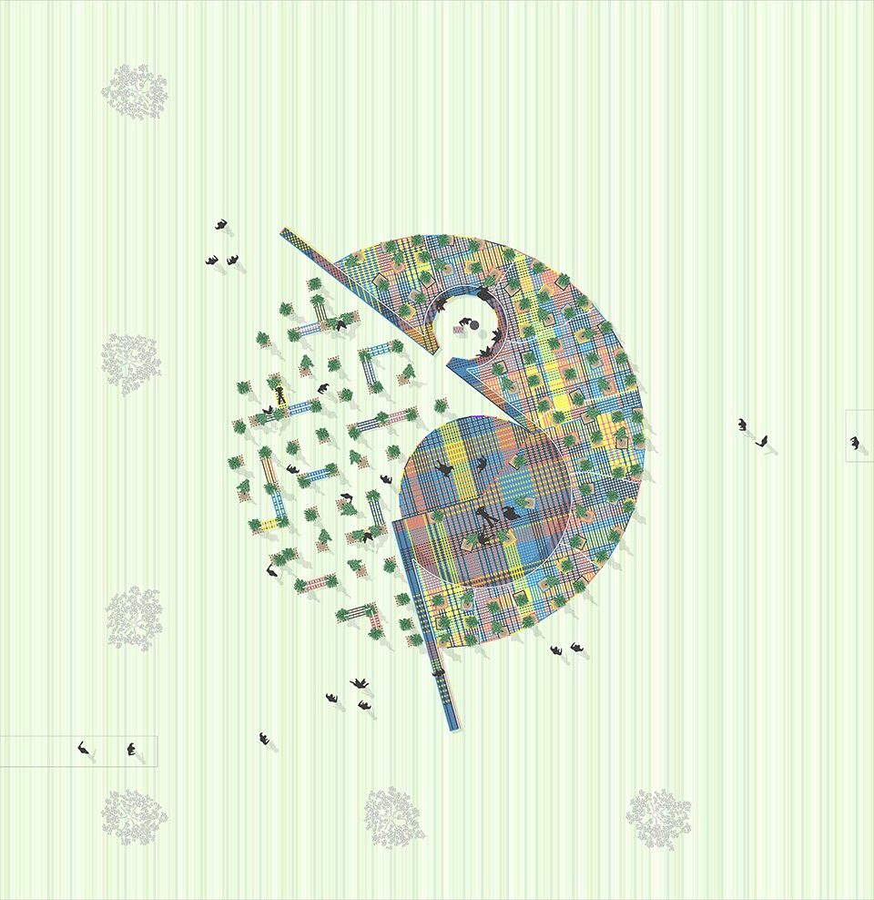 本装置项目立足于环境保护和材料选择,暂时性地将当地的建筑和景观元素与特色鲜明的现代建筑结合在一起,重新组织出一个新地标,为人们提供了一种令人难忘的空间体验。