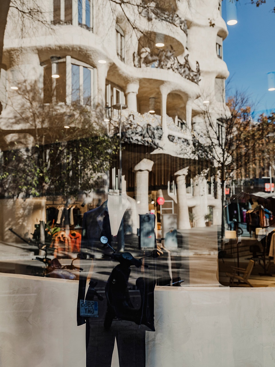 Architecture is never an autonomous element but rather one which always belongs to the site where it is built. With Casa Mila on the other side of the pavement of the concept store, a dialogue between the two buildings became inevitable, and was translated by incorporating materials of Casa Mila onto the new Simorra store.