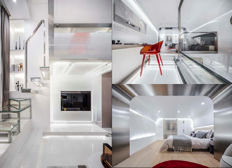 中山府样板间项目是一个全新的实验空间,用渐变透明电视柜结合空中平台形成虚幻的空间感受犹如漂浮着的云,加上悬空的玻璃踏步就像步入云霄,同时悬空的玻璃踏步又不影响自然光线的照入。卧室空间用光带以及弧线勾勒出柔和与唯美的氛围,整体干净的色彩以及穿越的灯光展示了未来空间设计的趋势。加上空间的穿插体量构件了充满想象力的解构空间。