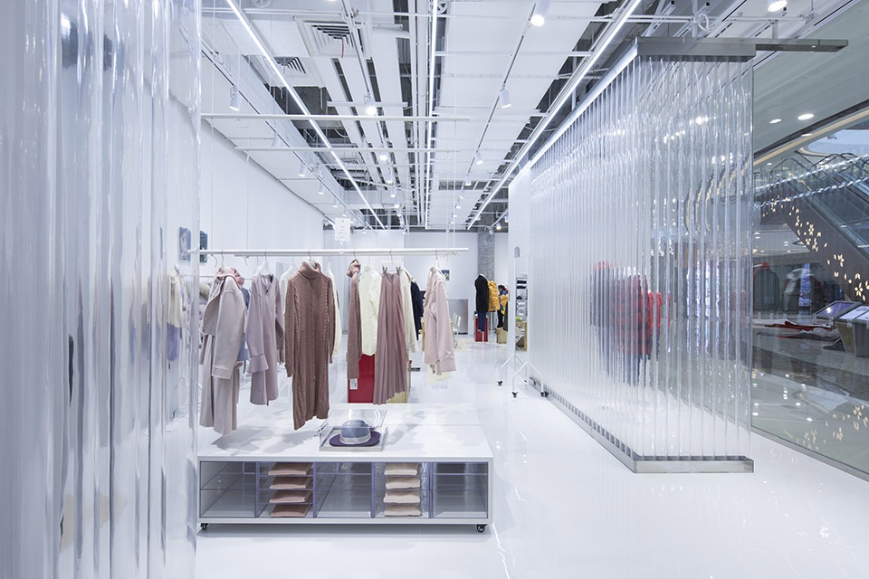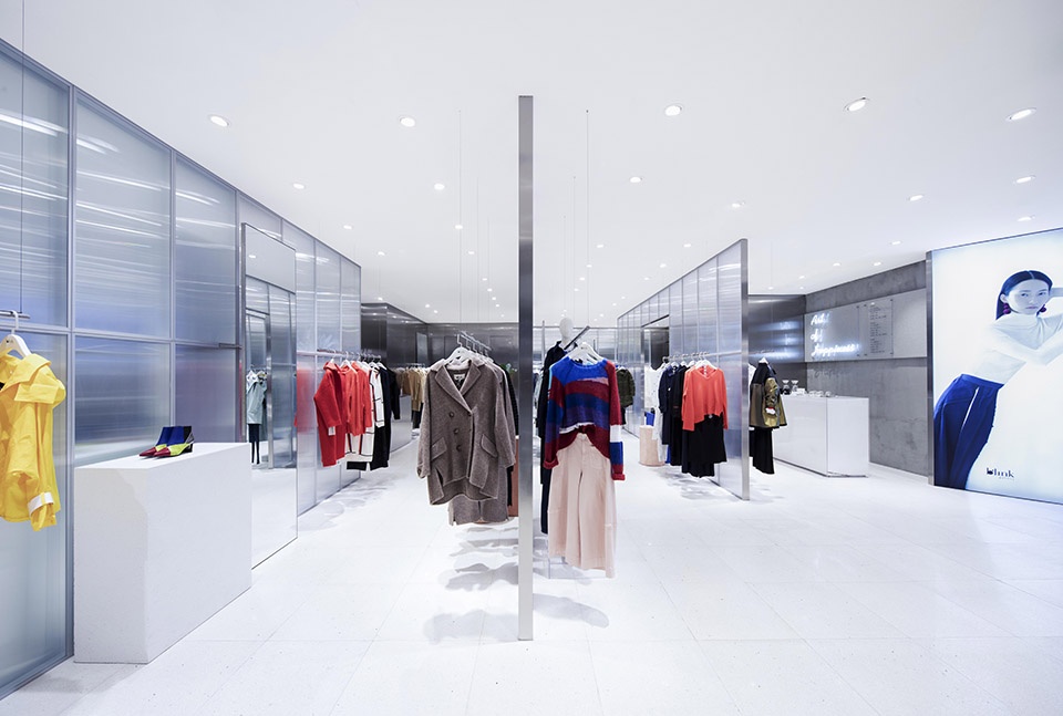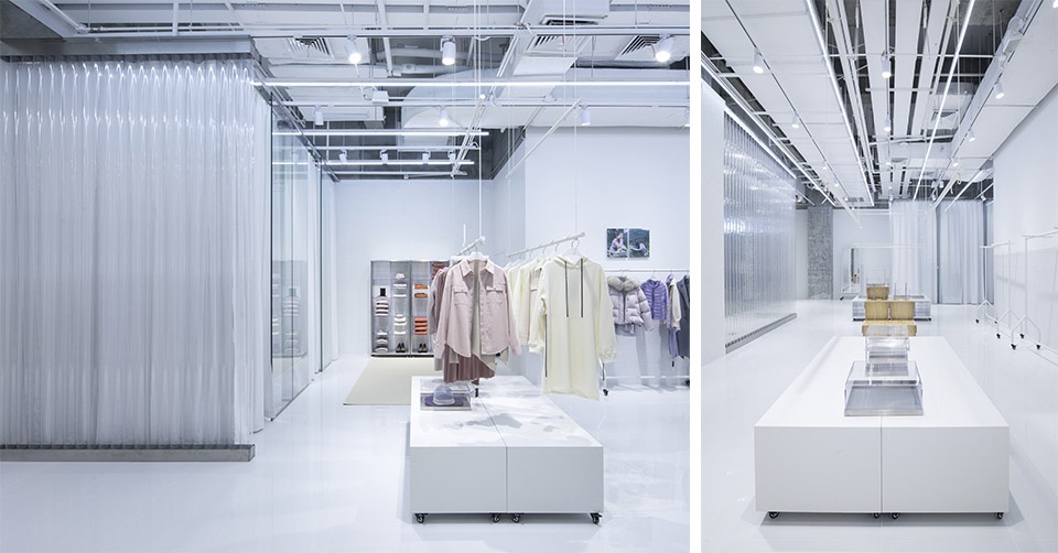 在品牌原有的空间特性之上进行设计更新与重塑,更加强调品牌信条。以铝制边框镶嵌透镜为隔断,与用湿灌胶打造的家具形成鲜明对比。整体环境清新、未来感强。