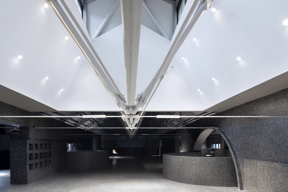场址是在原上海冶金矿山机械厂区里,一间1958年的小型单层坡顶仓库,占地435平米。这个长方形的空间内部,因为历经修整,建筑原有的金属工业痕迹几近消失,只有三角形的屋架和屋顶上的老虎窗还带有那个时期厂房的特点。
