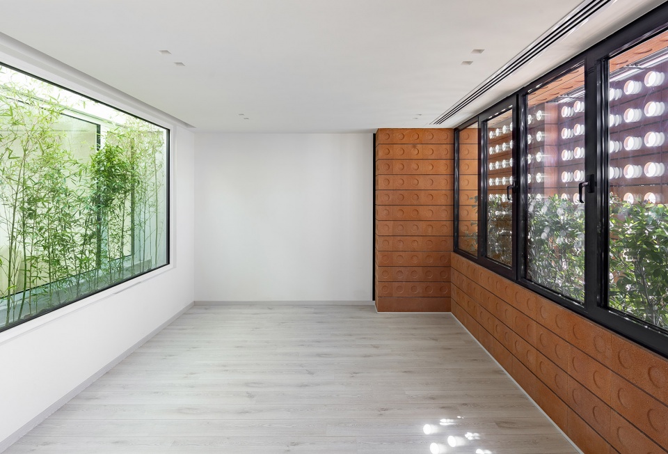 Kohan Ceram大楼始于“镜框砖”这种新型模块化材料的形成。它集透明性和坚固性于一身,可以从中窥见城市面貌。除了可以用来砌筑、修饰和保温外,它还具有很多尚待开发的潜能。镜框砖不仅被用来打造外立面,还从一个表面转化为体量,并以模块化绿色空间的形式延伸到建筑中。这些模块取代了普通的墙壁和窗户,定义了建筑中不同的空间。因此,内墙是由外墙延伸而来,遵循了融合双重品质的主要设计标准。