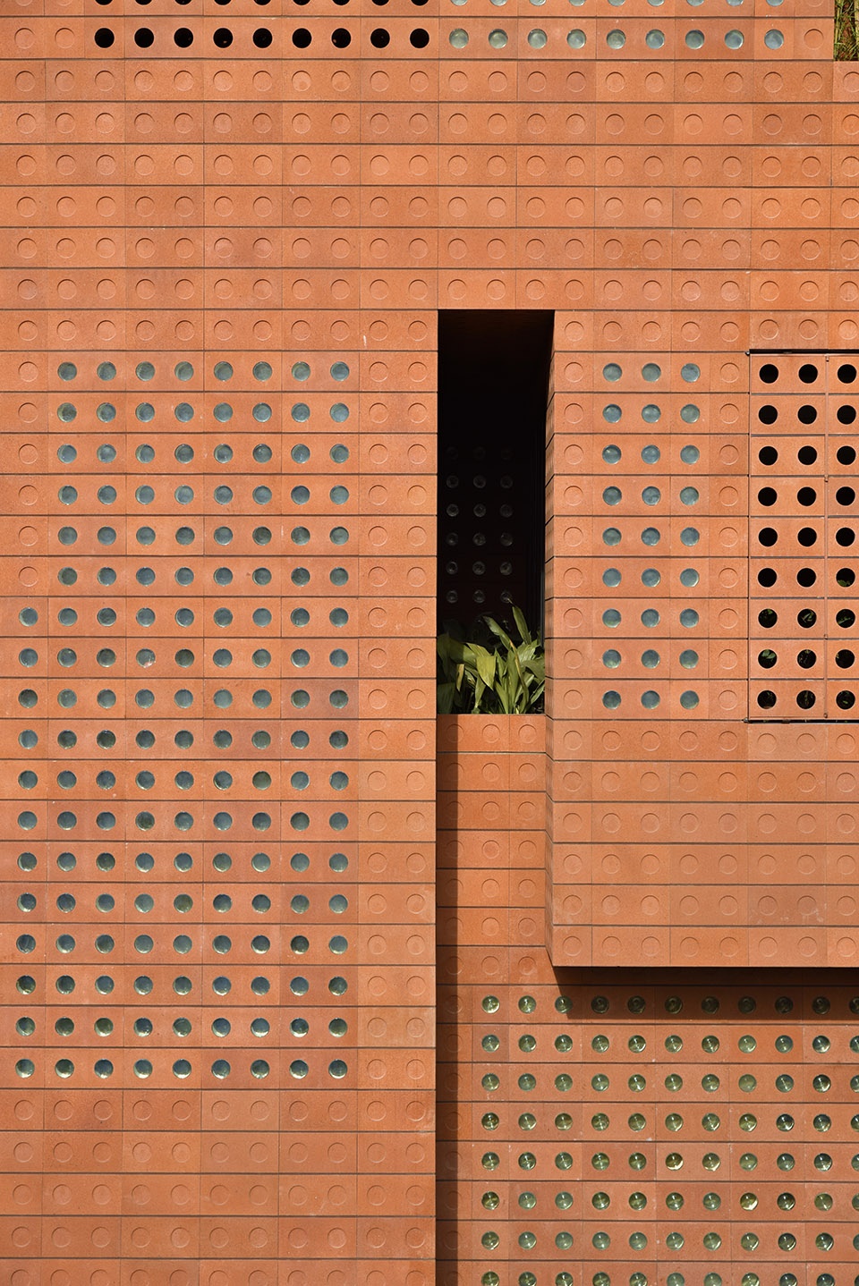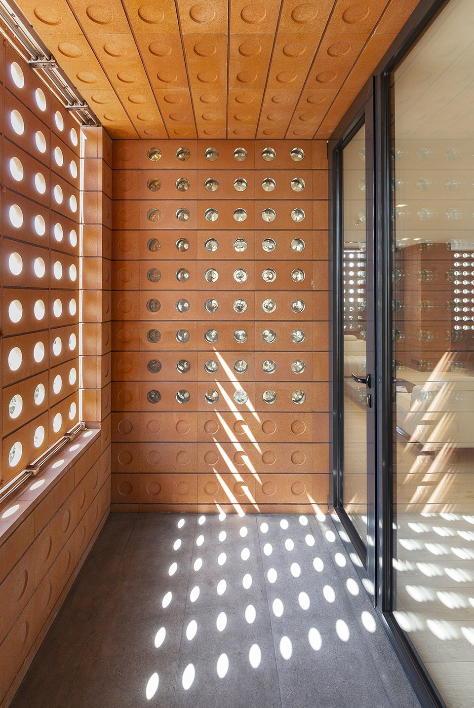 在南面和西面阳光照射较多的地方,砖砌玻璃模块可以捕捉多余的阳光能量,并使最优数量的光和热得以进入建筑。统计数据显示,整栋建筑67%的面积在有用日光照度(UDI)范围内。该项目中使用的砖是可回收的,对生态系统的影响极小,且在德黑兰的气候条件下维护成本相对较低。一些内部空间被玻璃隔板隔开,以建立视觉连接并保障更好的光线穿透性。
