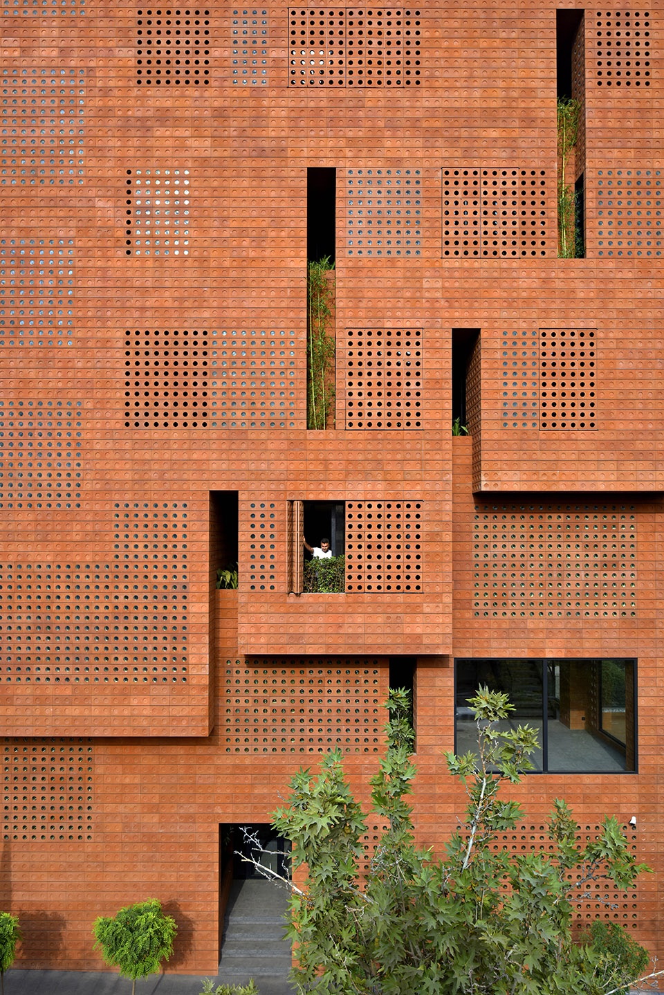在建筑的某些部分,外立面已延伸到室内,并在内部空间形成高达5米的空隙以引入自然光和通风。进入这些空隙的空气被花箱中的植被过滤,变得更加干净且清新。大楼总面积中约有70平方米专门用于绿地。它们在德黑兰干燥和污染的天气中过滤、湿润了空气,极大地改善了人们的生活质量。