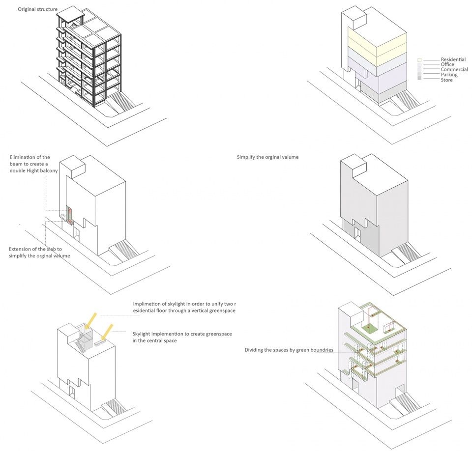 ▼现有体量的形成,volum formation © Hooba Design Group