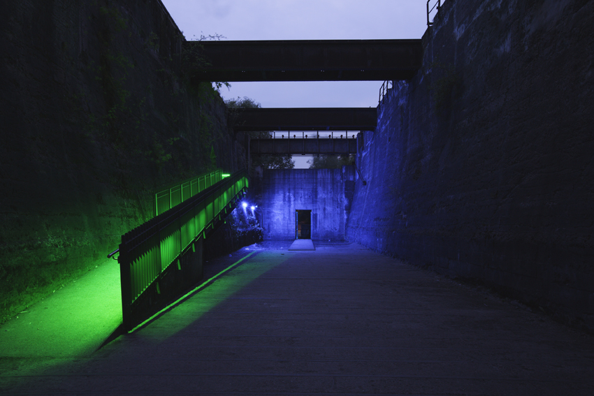 In cooperation with artists and the Lehmbruck Museum in Duisburg. Through openings in the massive walls, paths and footbridges connect the labyrinthine complex. They will lead to artificial gardens with differentiated microclimates, with sound effects and various artistic interventions. With concrete saws entrances were cut into the massive walls 2 to 3 meters thick. They open up completely new prospects into the future gallery, the dark rooms of which had been visible only from above.