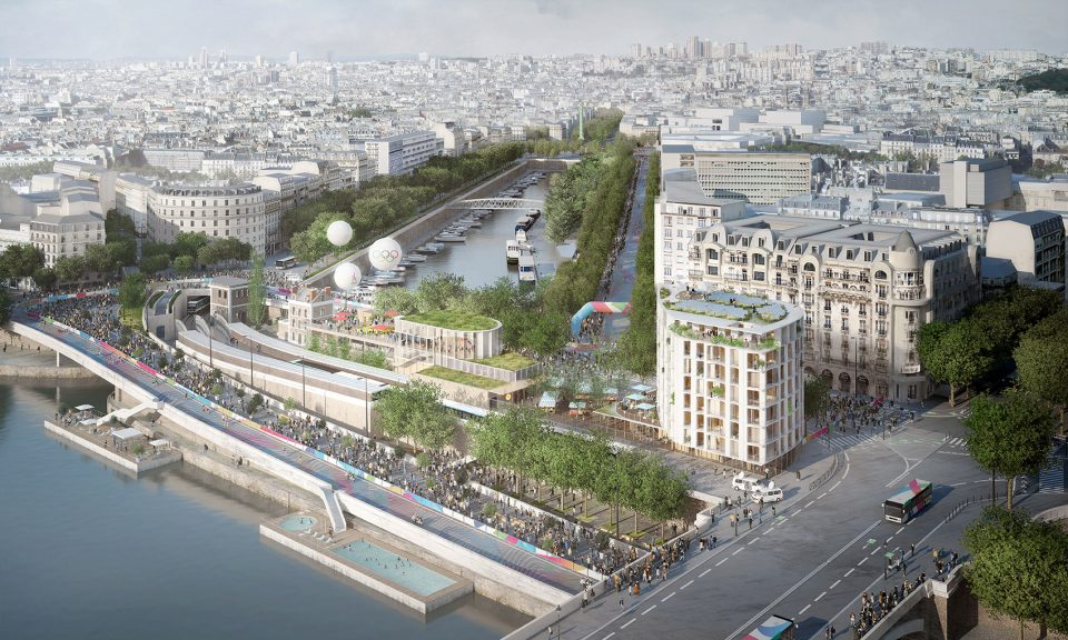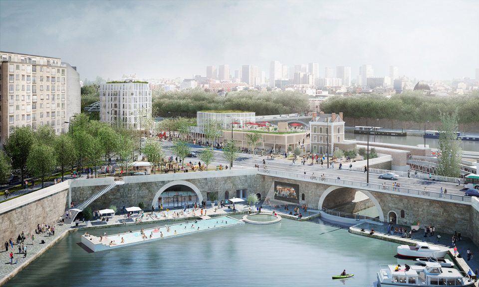 可持续性驱动了整个项目。由于巴黎正致力于在不久的将来创造一条可以供人游泳的河流,设计表现了城市和水岸的新关系。基地中设有一个公共泳池以及一个供生态多样性研究使用的水池,其水质受到监控。项目中的住宅由当地木材建造,临时馆则采用再生材料和可拆卸结构,在减少对环境的影响的同时促进城市发展。