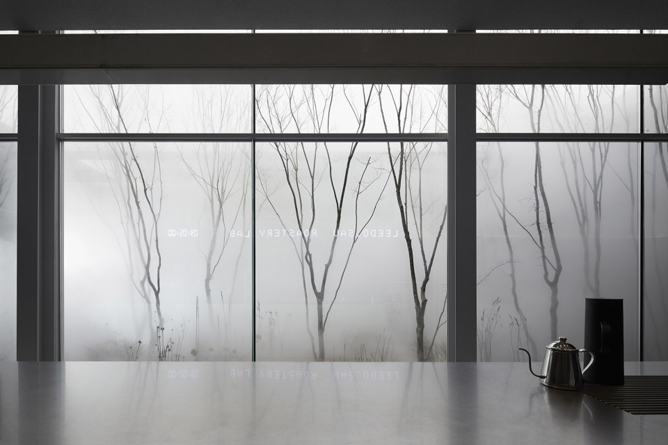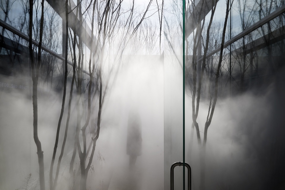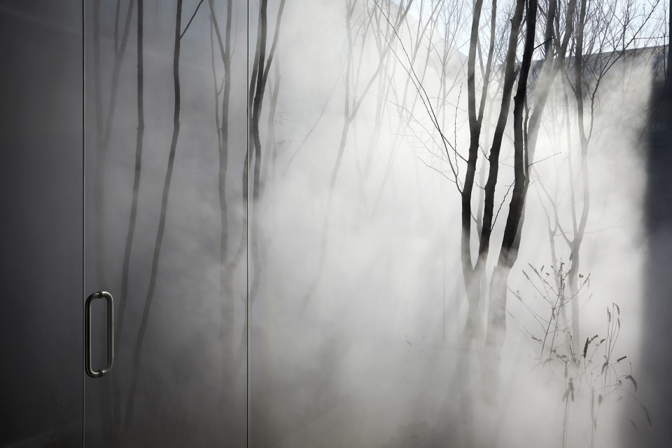 设计希望在人与精神之间建立一种情感的联系,咖啡店周围的雾气便起到了这一作用。雾气中包含了多种多样的感情。它们模糊边界,不仅能让事物看上去更加简略,更能帮助人们专注于自己的内心。