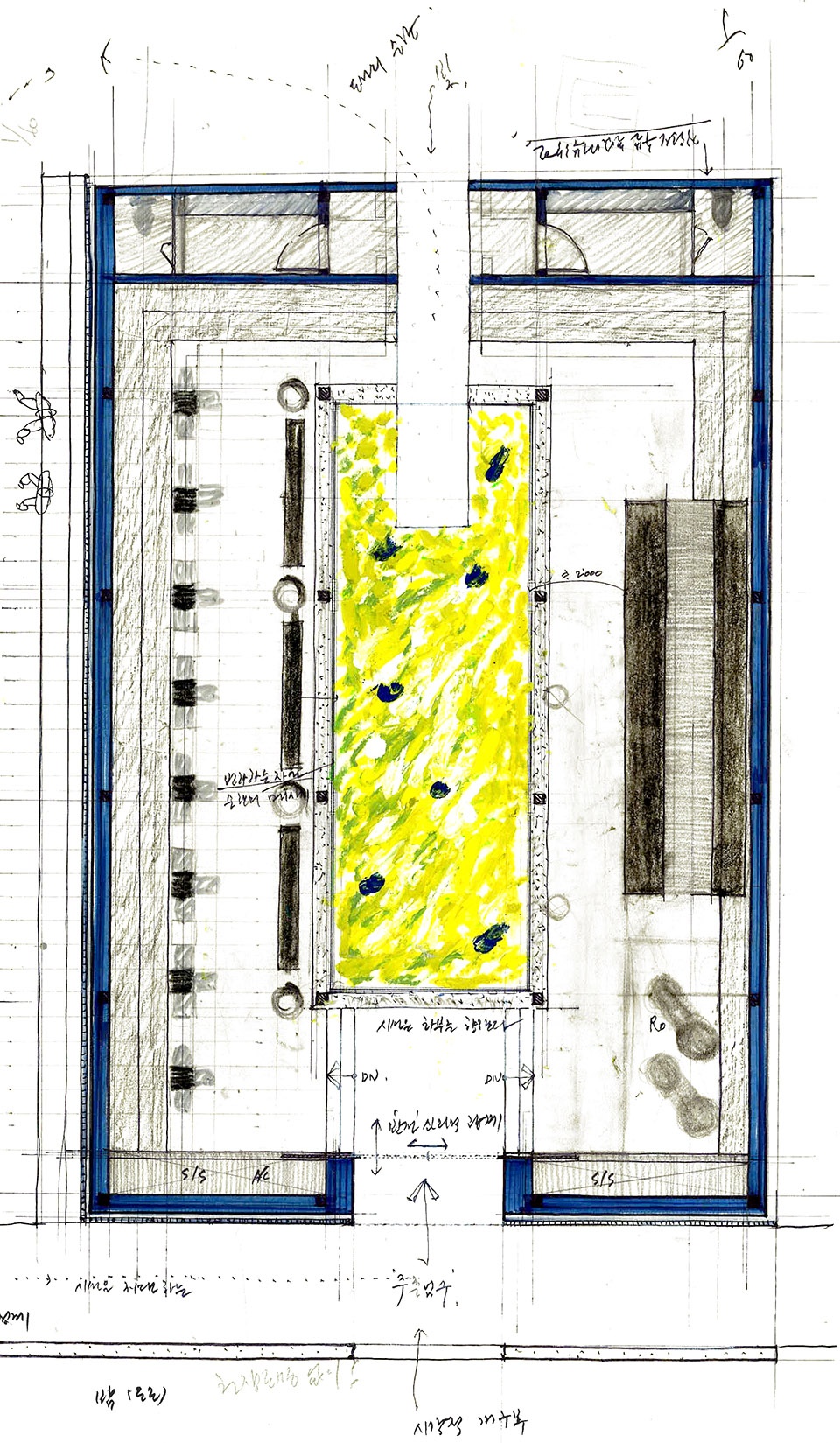 First, Sejong Metropolitan Autonomous City is a newly developed city around Seoul area. We wanted to provide a place where people can escape from the cold city life to be able to reflect on themselves. We wanted to provide people the opportunity to clear out their tiring daily routine and to experience a time to face themselves through this place.