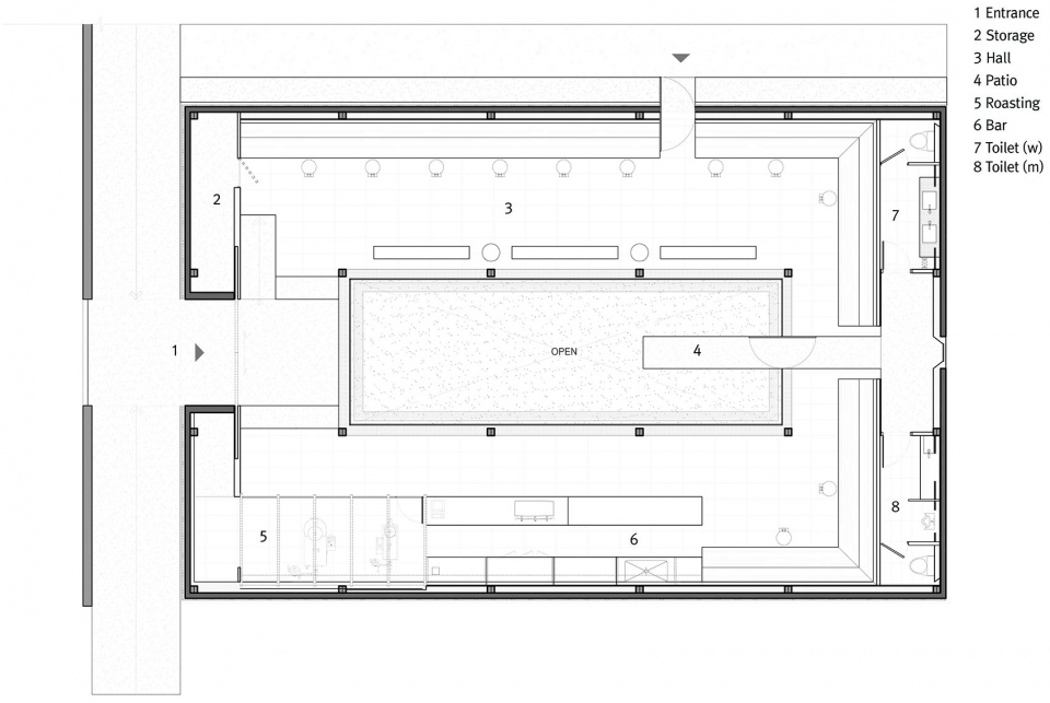 The simple square metal mass exterior and site being located not too close to the living area display ‘refinement.’ Second, the whole project started from wanting to provide special time to customers. We considered that people buying coffee is like purchasing the time they spend in the café.