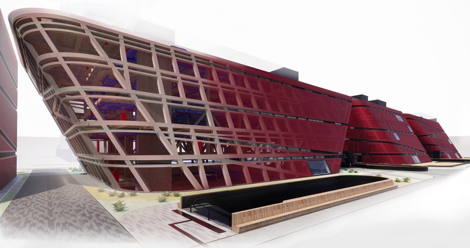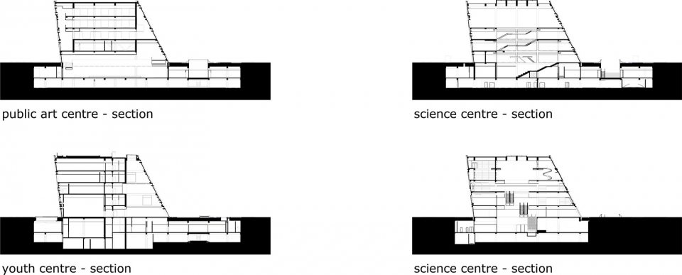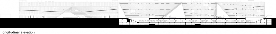 Programme: Cultural complex of 95,000 m² with art museum (13,500 m²), science centre (10,000 m²), youth centre (8,000 m2), retail (7,000 m²) and a book mall including cafes and restaurants (35,000 m²) and 21,500 m2 of underground parking and a new public square totalling 3.8 hectares. Building: 400m long, 50m wide, 25m high