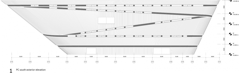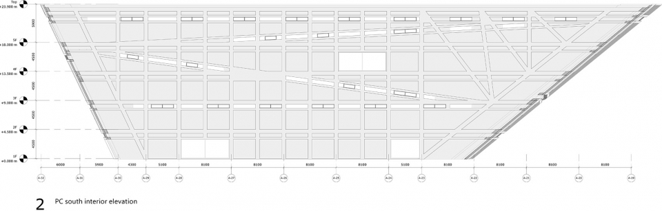 ▼公共艺术馆体量内部通道立面,interior elevation of art museum