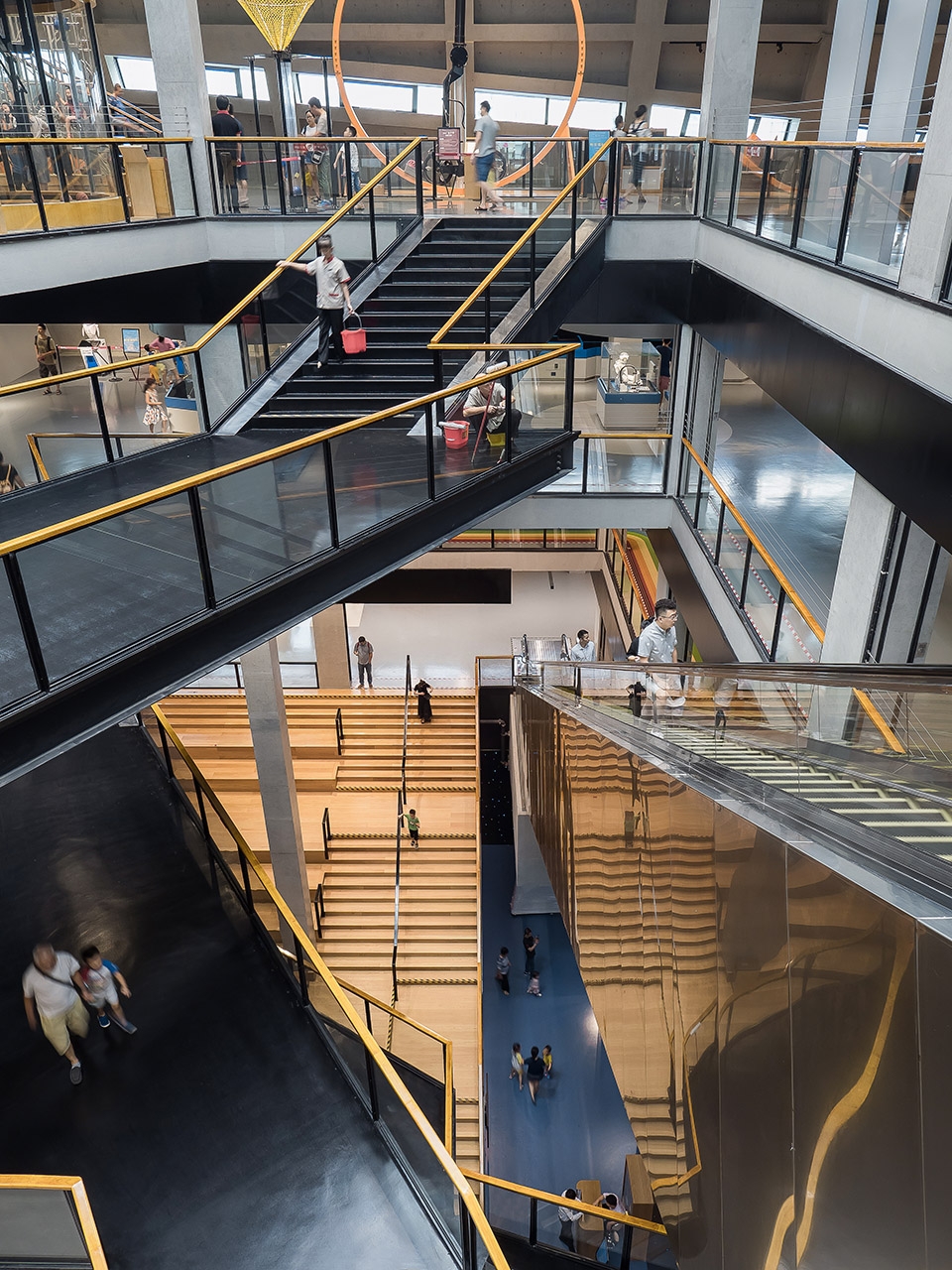 ▼科技馆内交叠的楼梯形成视线交流,the overlap stairs create visual connection ©Zhang Chao
