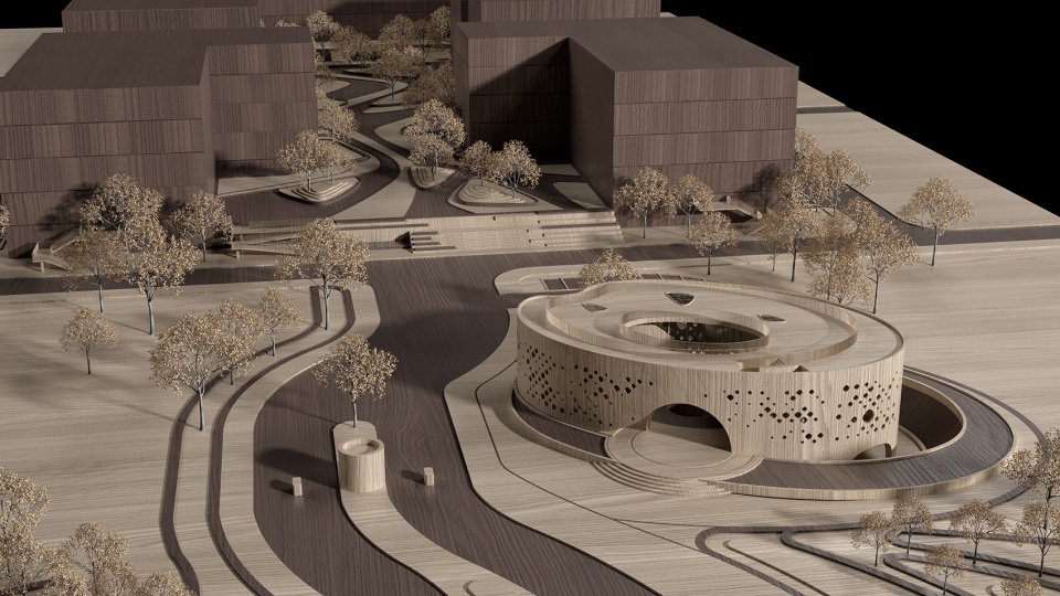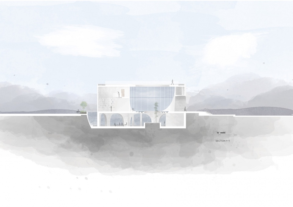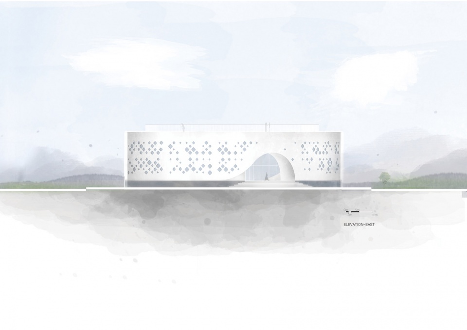 From a vibrant landscape angle, we design the cultural center in a vibrant dynamic texture, it is the prototype of the circular building. Through the formation of circles, a multi-level spatial space is formed to achieve a coherent exterior and interior experience. This is an open space for people come in and out, the arched wall and exquisite skylight, giving a light and transparent feeling.