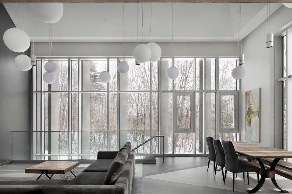 The site’s “renaturalisation” process was initiated as soon as the building was completed. The landscape architects reintroduced native trees, ferns, and shrubs on the grounds in order to blend in the natural surroundings. Bollards were installed throughout providing low lighting in accordance with local sky protection bylaws. Vehicular traffic is kept to a minimum on the site for better enjoyment of the surrounding nature.