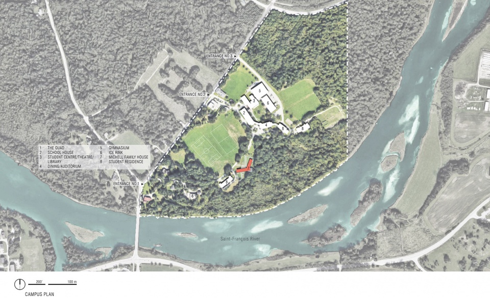 ARCHITEM Wolff Shapiro Kuskowski architects, a Montréal-based firm, is proud to unveil one of its most recent projects, an innovative residence for young students. Built for Bishop’s College School, this private boarding school provides a family-style environment for 270 students, age 12 to 17, coming from 37 different countries. Located near Sherbrooke, Québec, the century-old campus is set on a site of exceptional beauty, on the banks of the St. Francis River. The original buildings on this 250-acre campus are rooted in a long educational and architectural tradition.