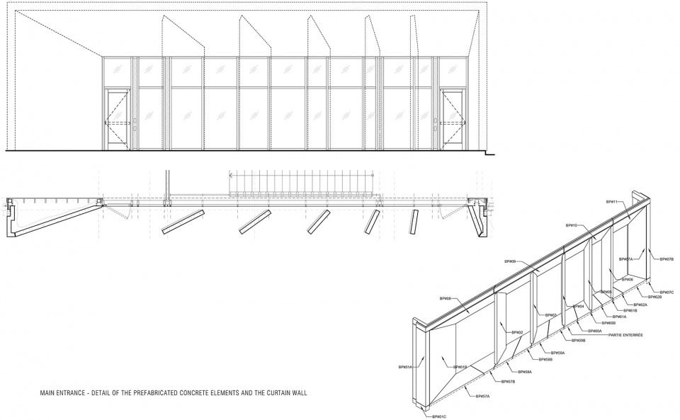 ▼主入口及其预制混凝土墙板和玻璃幕墙细节,main entrance – details of the prefabricated concrete elements and the curtain wall ©ARCHITEM Wolff Shapiro Kuskowski architects