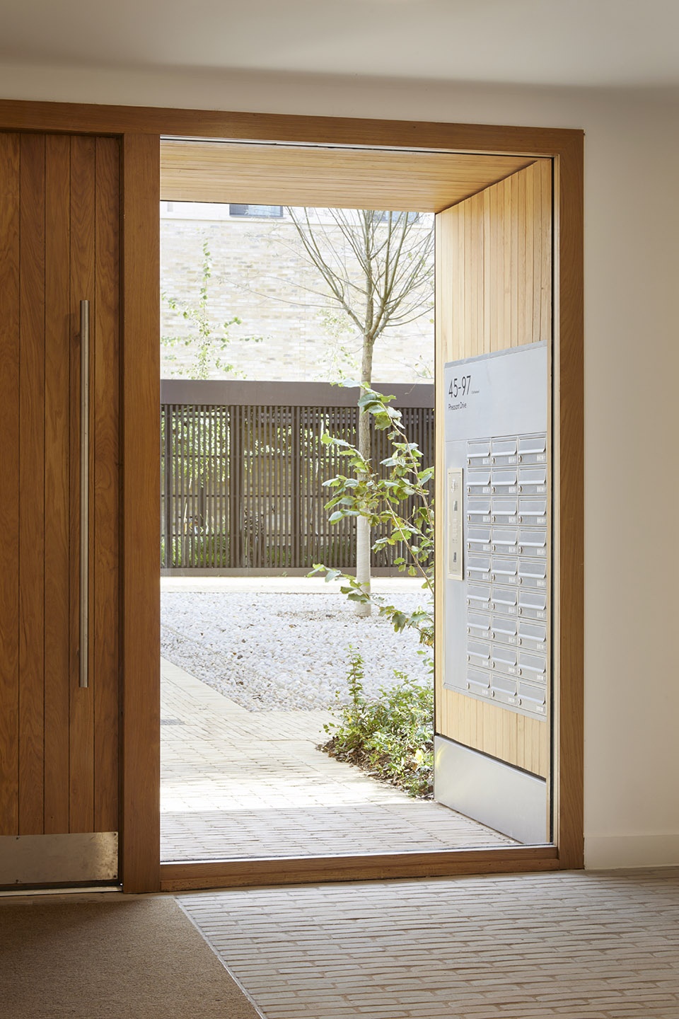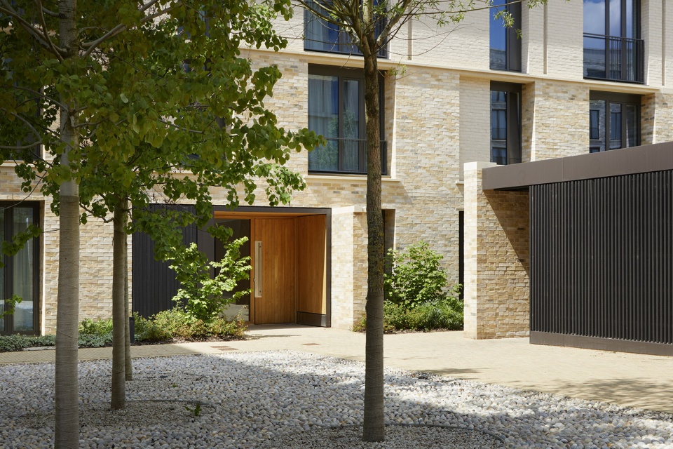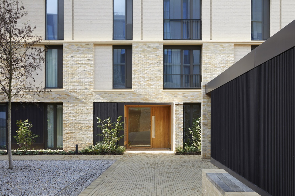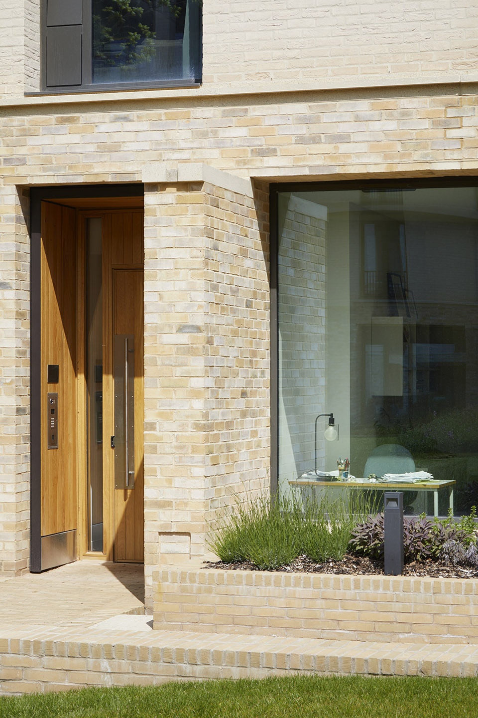 The palette of natural materials references the materiality found in the domestic architecture of Cambridge. Brickwork and traditional cobblestones provide continuity and a sense of permanence, while timber and natural elements such as plants and water features introduce detail on a more intimate scale.Building forms are strongly articulated and details vary to respond to their prominence within the surrounding context. At ground level this expresses itself as a brick plinth connected visually with the materials and activities within the landscape. Above this level the building forms are strongly articulated through the use of recessed brick piers and horizontal precast cills.