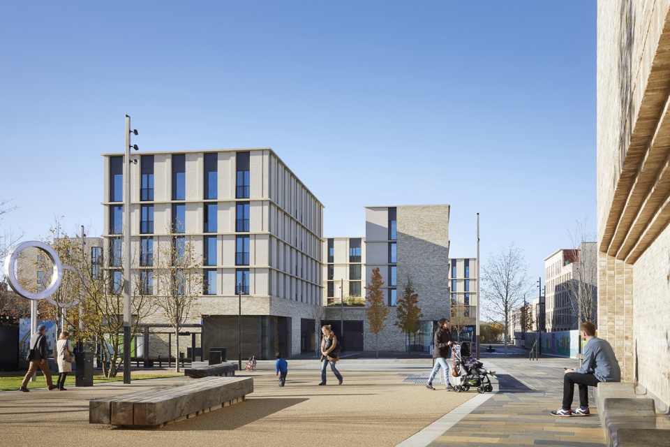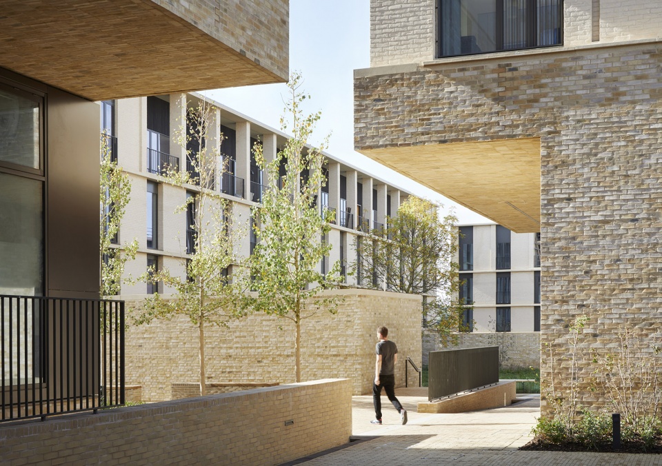 Stanton Williams has completed 264 key worker homes, together with generous social spaces and retail facilities in Eddington, North West Cambridge, for the University of Cambridge. A network of communal spaces, framed by 10 new buildings, forms the heart of the new neighbourhood. Stanton Williams’ designs are central to the University’s North West Cambridge development, which delivers high-quality, affordable housing for university staff, as well as community facilities and market housing.