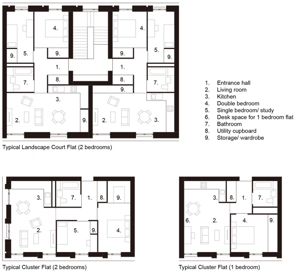 ▼公寓标准层平面图,typical flat plans ©Stanton Williams