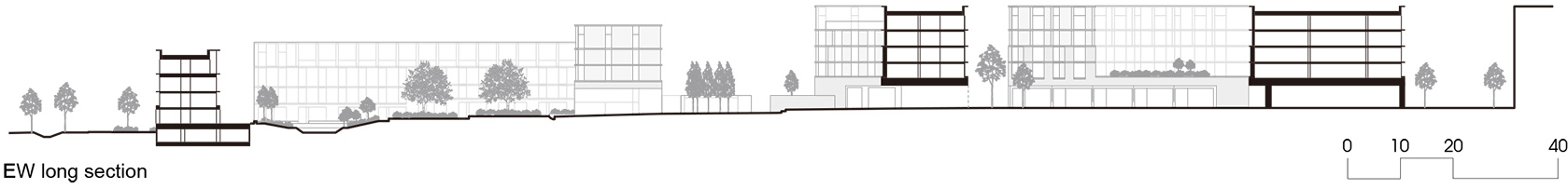 以促进集体生活为出发点,设计方案将建筑之间的“空隙”放在了与建筑本身同等重要的位置。由庭院和广场构成的网络在城市生活与新的社区中心之间建立了过渡关系。不同类型的空间相互连接,形成一个新的社会场景,呼应了传统城市与剑桥校园之间的差异化空间。从向城市开放的市集广场(Market Square)到半公共的景观庭院(Landscape Court),这些空间的大小和功能各有不同,并通过一系列空地和路径营造出尺度更加宜人的共享设施和半公共空间。