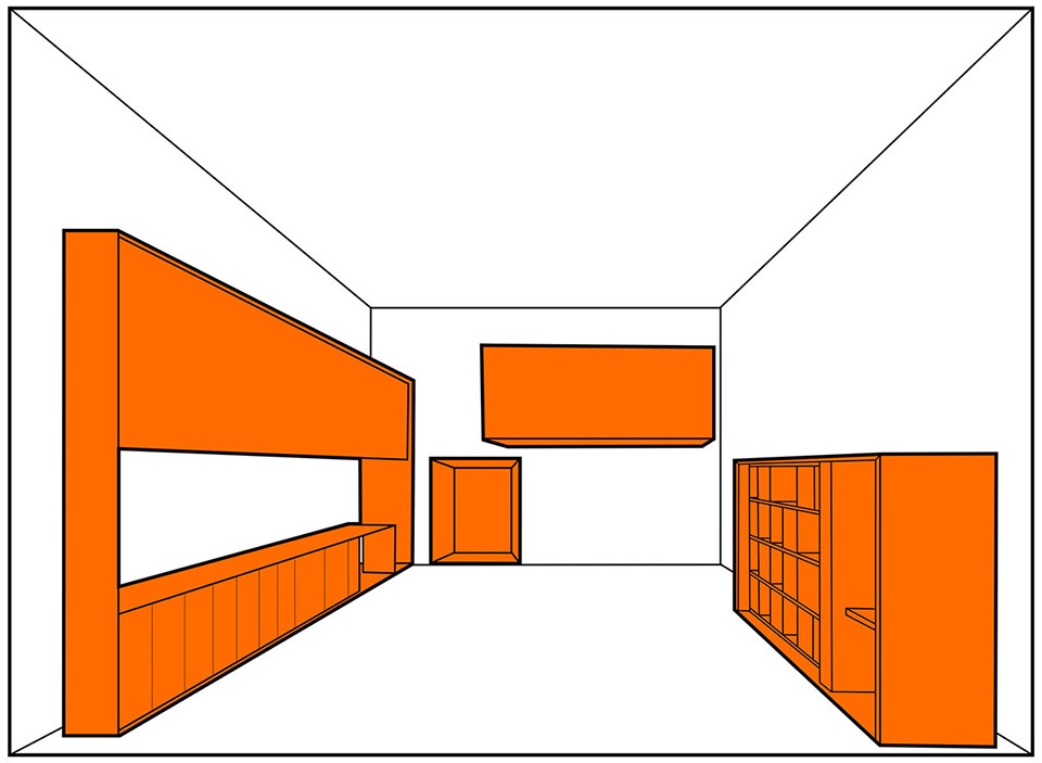The third box is the mezzanine that houses the office and the fourth box is the bookcase of the playroom.