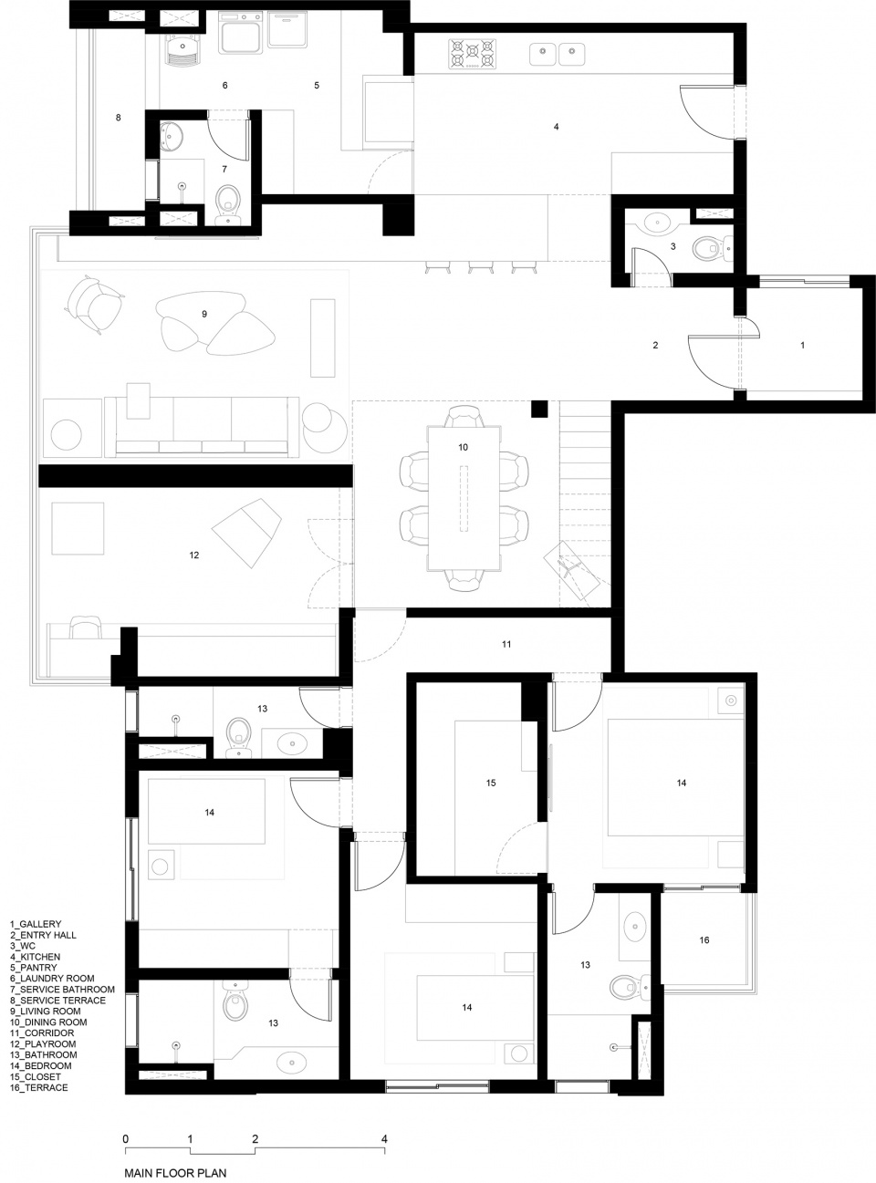 ▼主楼层平面图,main floor plan ©FCstudio