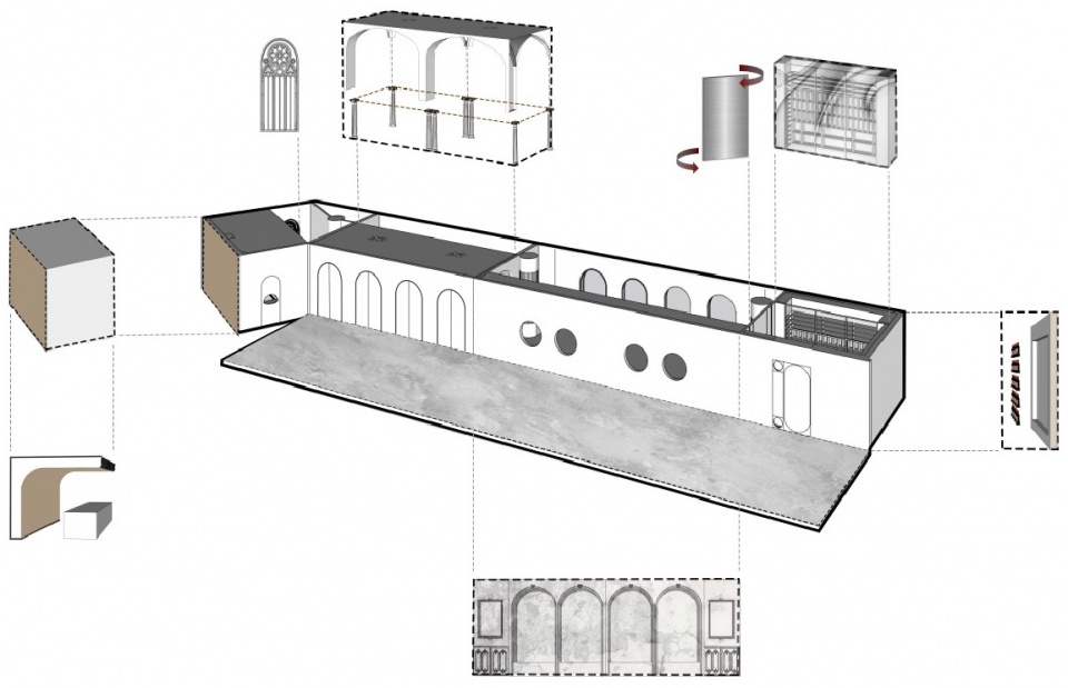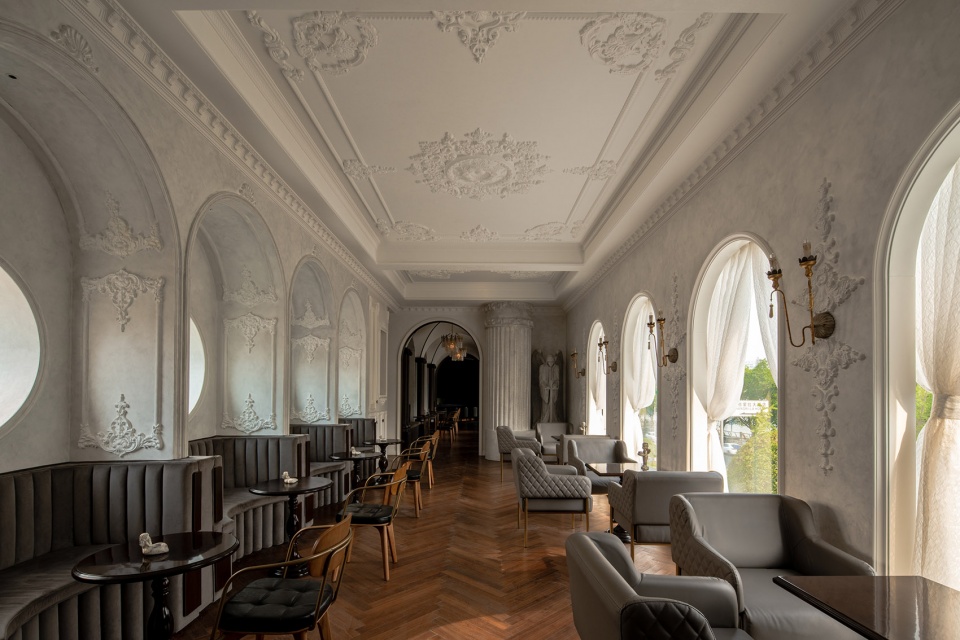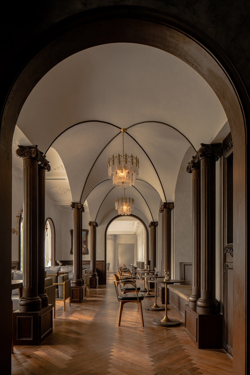 廊道纵深式的内部空间,动线由入口贯穿至底。“过渡”的概念将“节奏”植入空间;拱门与拱券式样架构,轻盈精巧,层次有序。我们一直在追求多样性的商业空间,所以在选材艺术涂料 石膏线条 浮雕 油画 均定制完成。让艺术感及体验感 在空间体现的淋漓尽致。