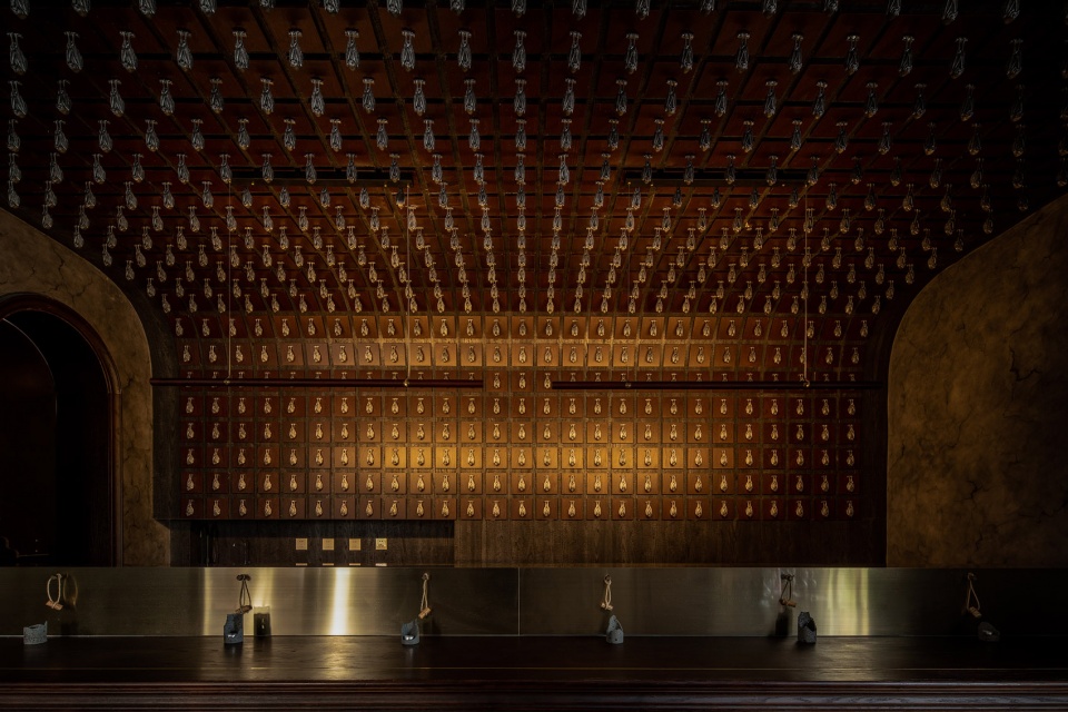 ▼红酒吧,浮雕塑造明暗和虚实的对比,wine bar, light shaping the space with the carvings ©形在空间摄影