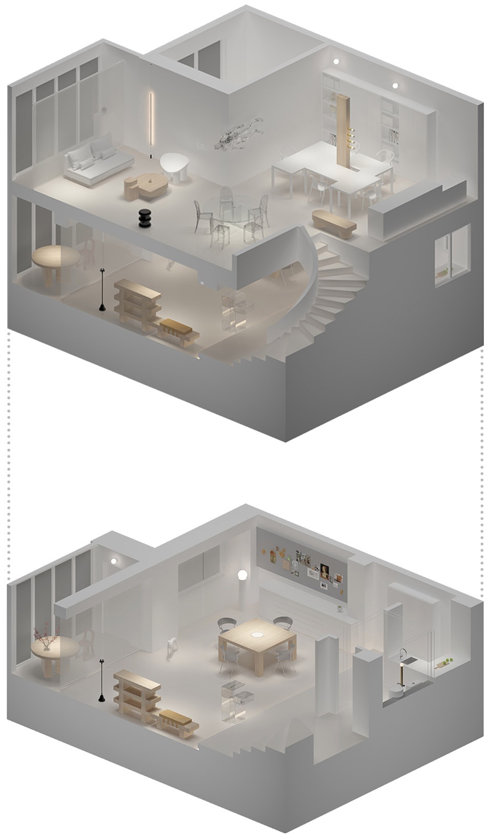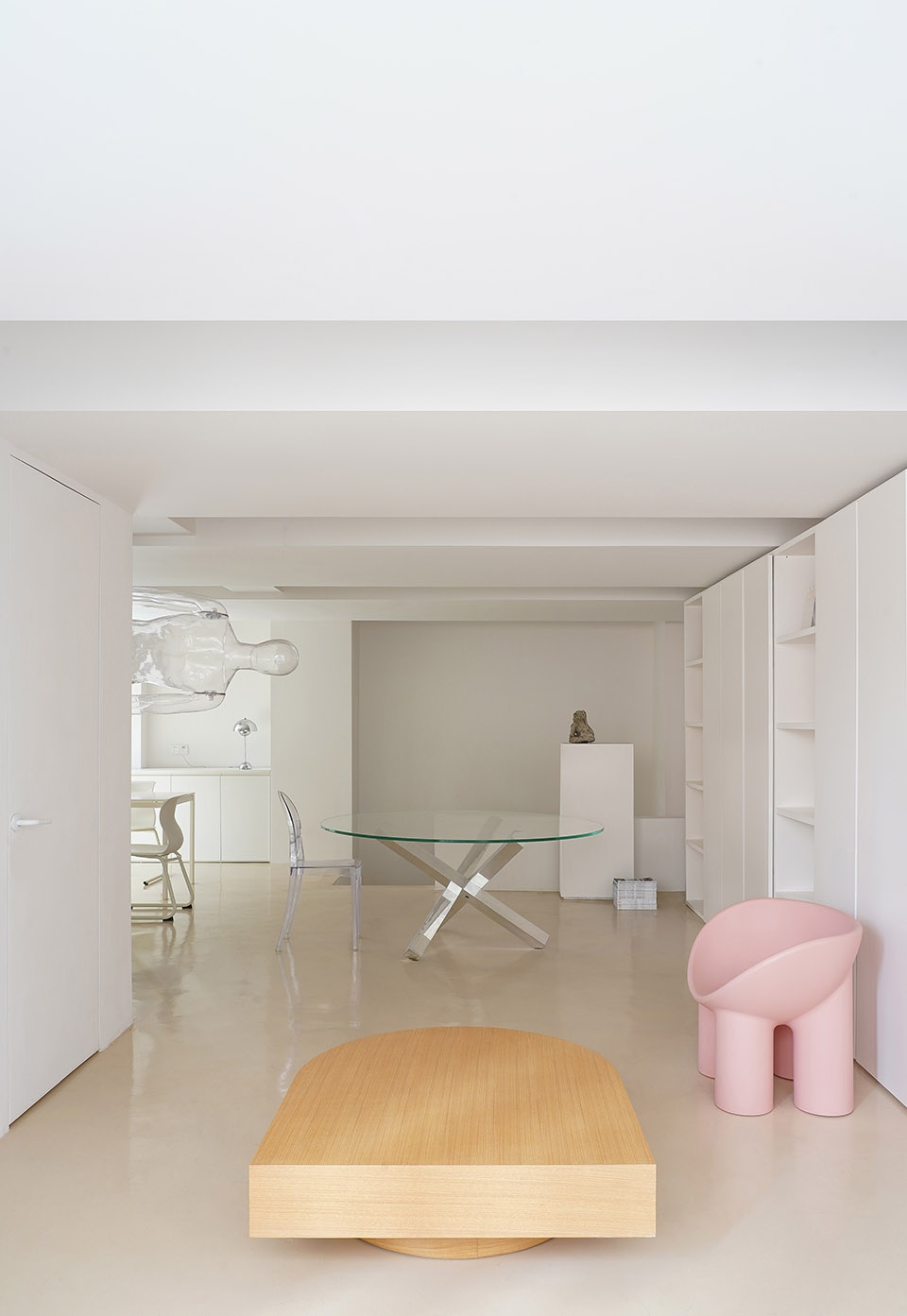 Human existence goes beyond the concrete identifiable social forms known to man. During the creative thinking process, it is as if an invisible version of yourself floats from your body in an attempt to extend your existence. A space can tell you everything about its designer. We have attempted to make the studio space feel like air: objective, homogeneous, concrete and yet abstract. It cannot say anything, but when you immerse yourself in it, it is as if time and space are homogeneous.