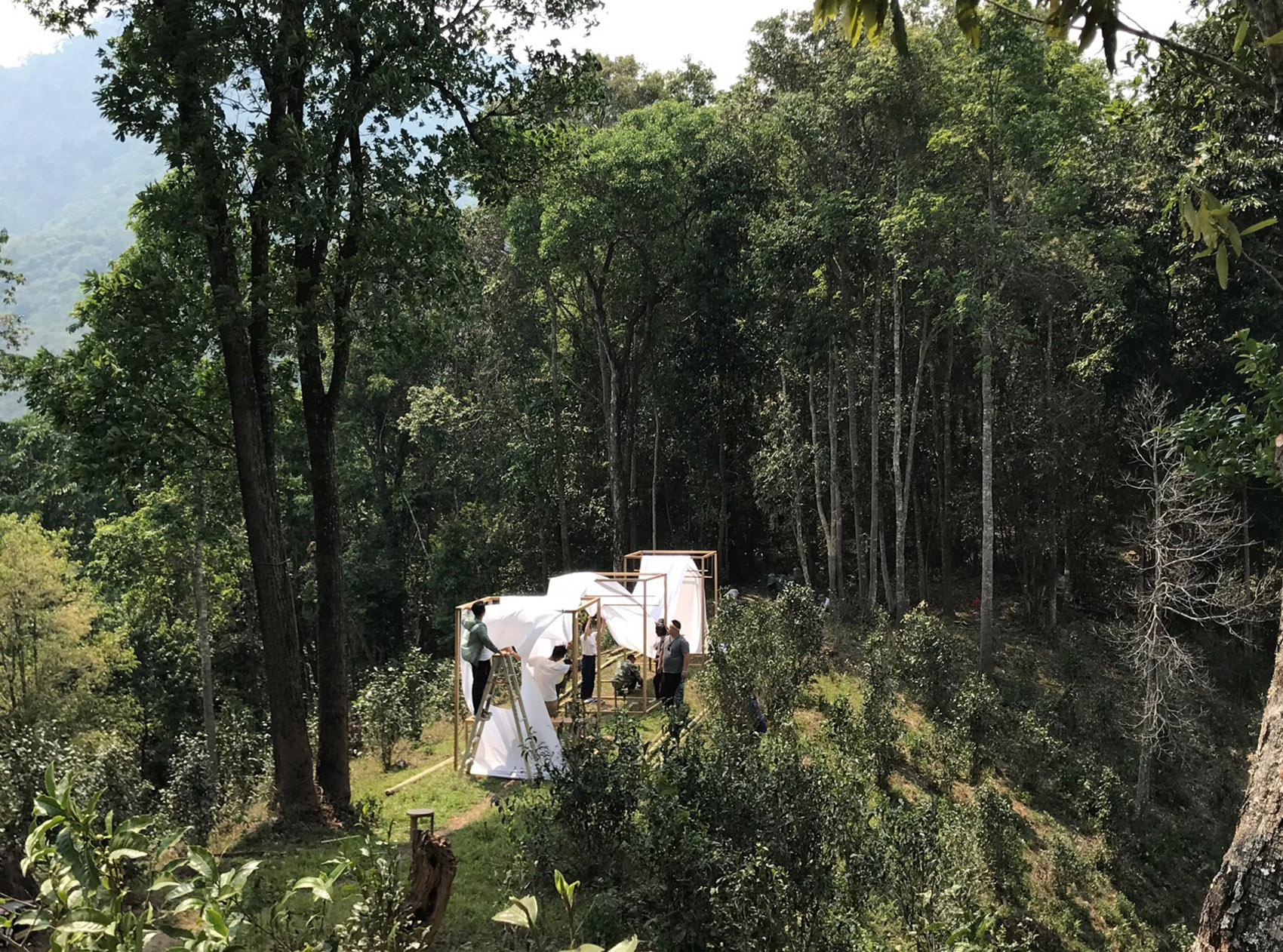 ▼搭建茶亭的临时队伍由设计师,摄影师,视频团队组成,The tea pavilion was built by a temporary team of designers, photographers and video team ©Boris Shiu