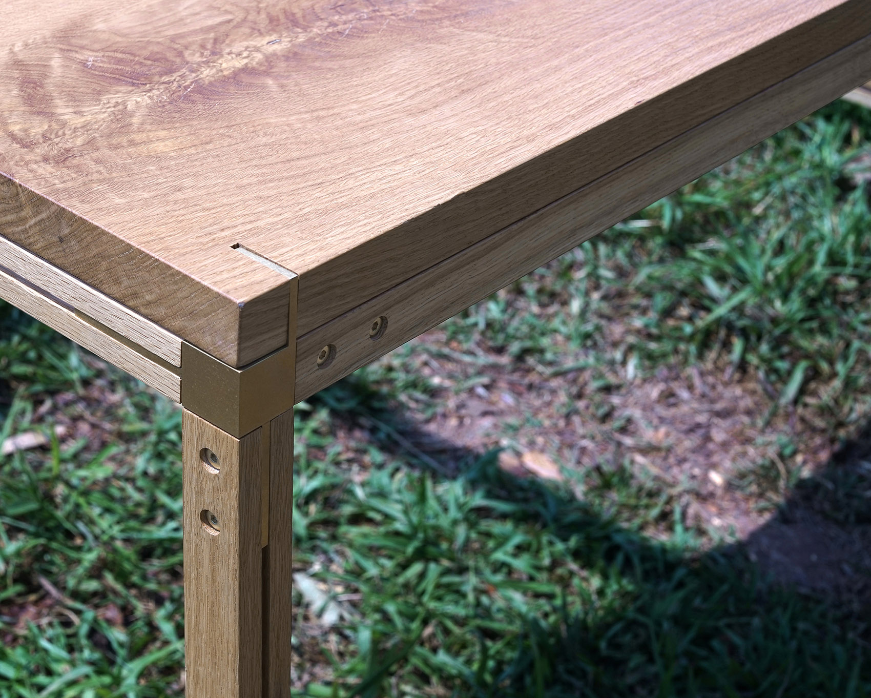 ▼茶桌黄铜三通构件与橡木连接细部,Structural details ©亼建筑