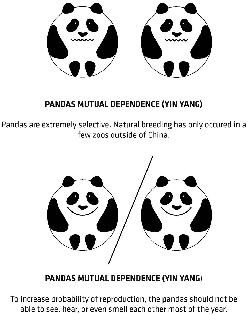为了促进繁殖,两只熊猫在一年中的大多数时间应避免相互见面、听见彼此的声音甚至闻到彼此的气味。