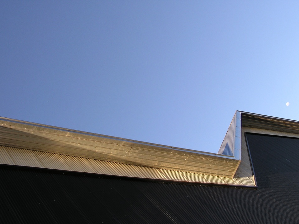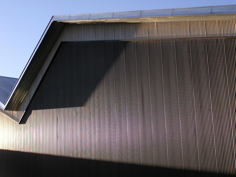The Municipality established that the roofs had to have a minimun slope of 18° degrees, transforming this into an important issue because the huge horizontal development of the layout plan, implied a very tall profile for the building, and an enormous volume to air conditionate. Thus, comprehending the roof´s presence, we decided to materialize it as a folded metal sheet, giving the idea of action and movement. Reinforcing this concept, and trying to separate the roof from the major box, an extensive semi transparent sheet lets the sun in. Over the eastern front, the accesses are resolved in two different levels, the administrative area, a room for various activities, wardrobes, kitchen and dinning room, and other supporting programs. Natural illumination into the higher plan was achieved a result of the roof´s alternate foldings.