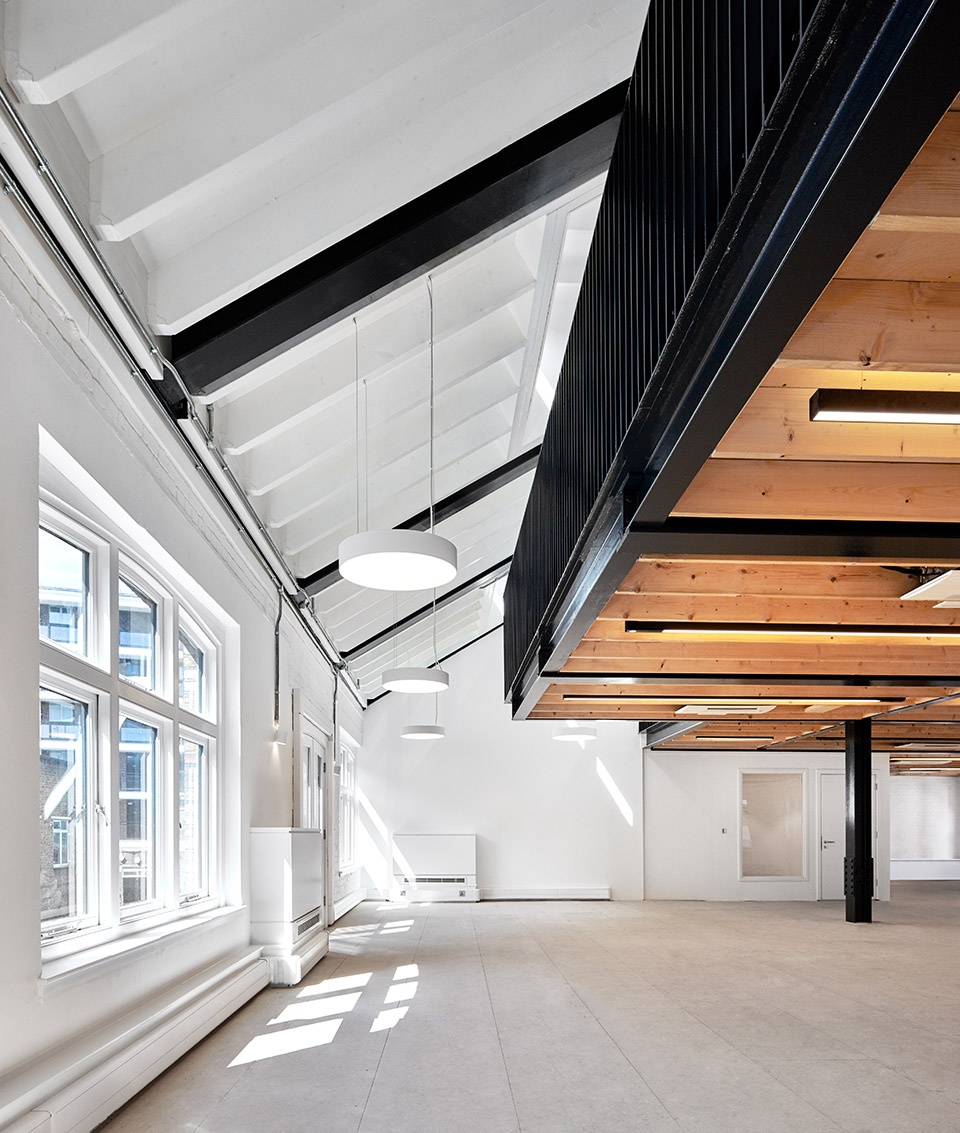 ▼屋顶被改造为明亮的开放式办公空间,roof is transformed into a bright open office space ©Alan Williams