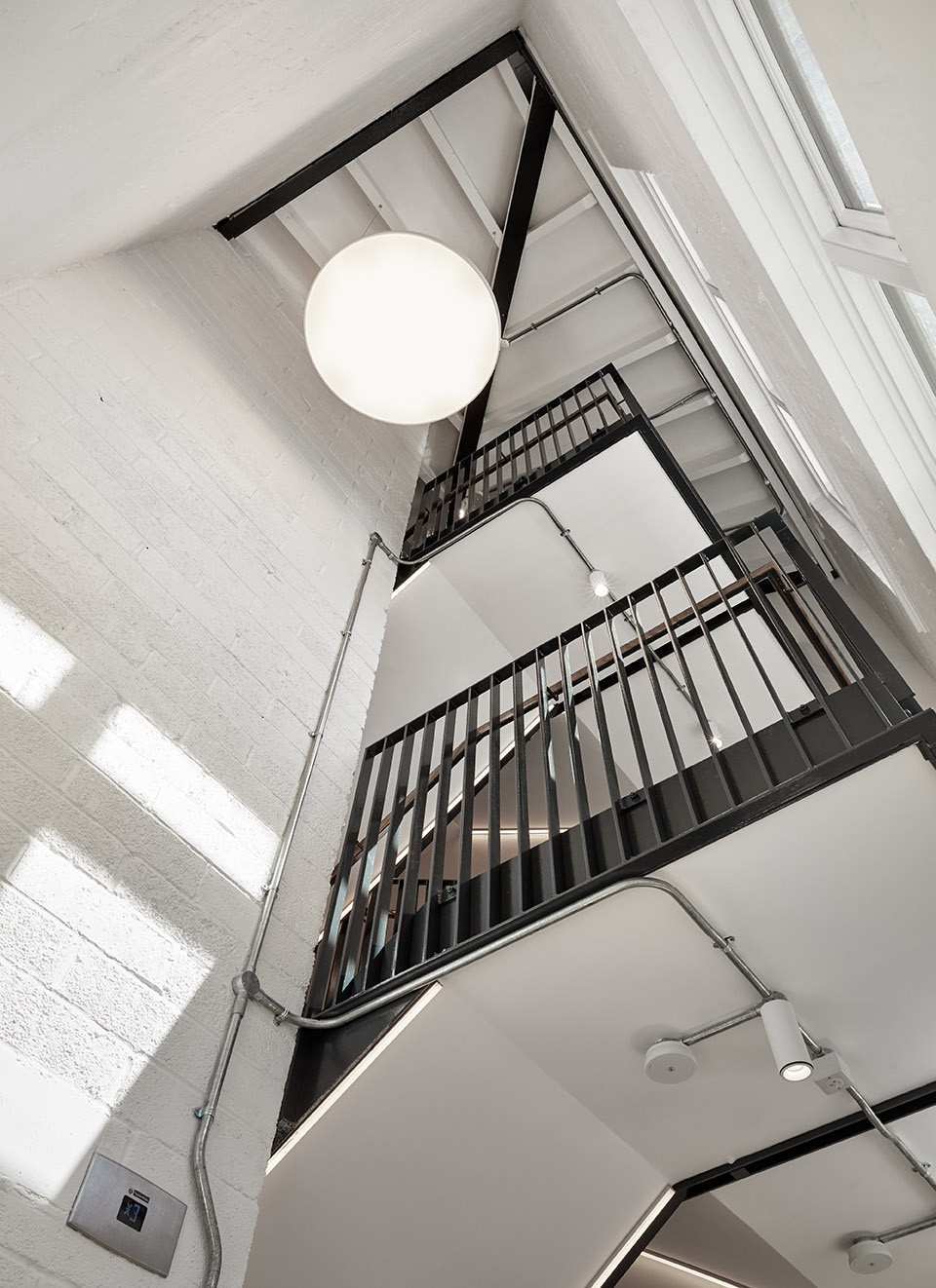 The project offers an open plan office space with contemporary interiors that reflect the industrial character of the building.