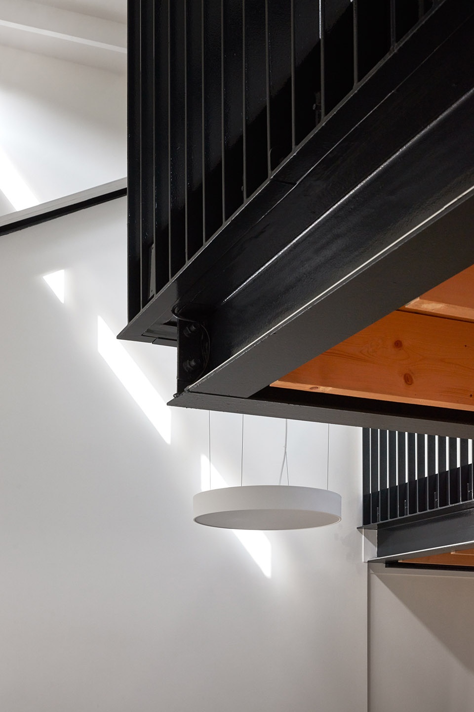 建筑中现有的商业空间布局过于复杂,因此事务所为建筑改造升级了核心交通空间。同时,改建后的屋顶也创造出额外的可出租空间及大型开放式办公空间。