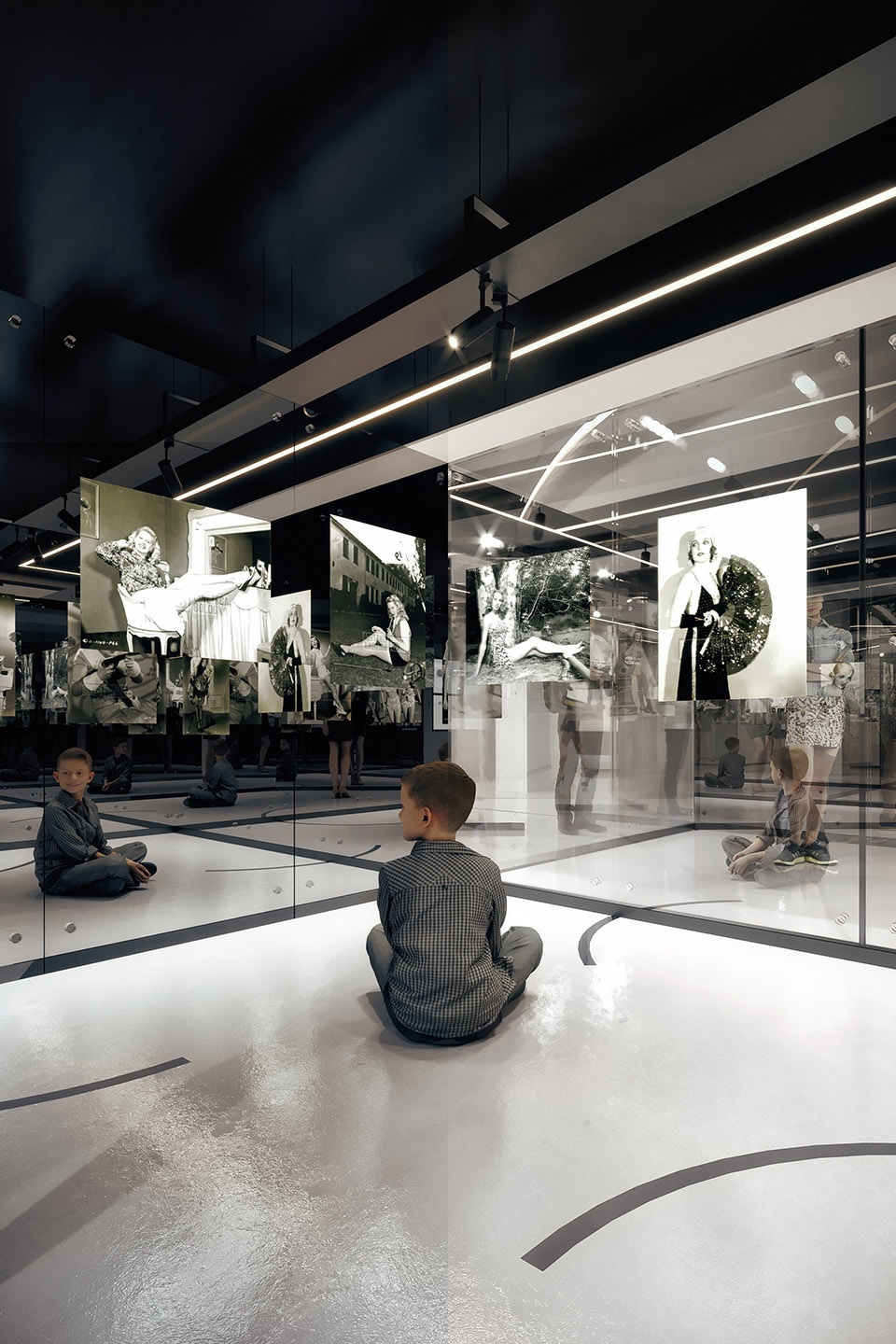 Mirror Room is the most hidden room that reflects on both sides and camouflages itself with the surroundings. It conceals itself in the reflection of the starlettes’ photographs as well as visitors on both sides.