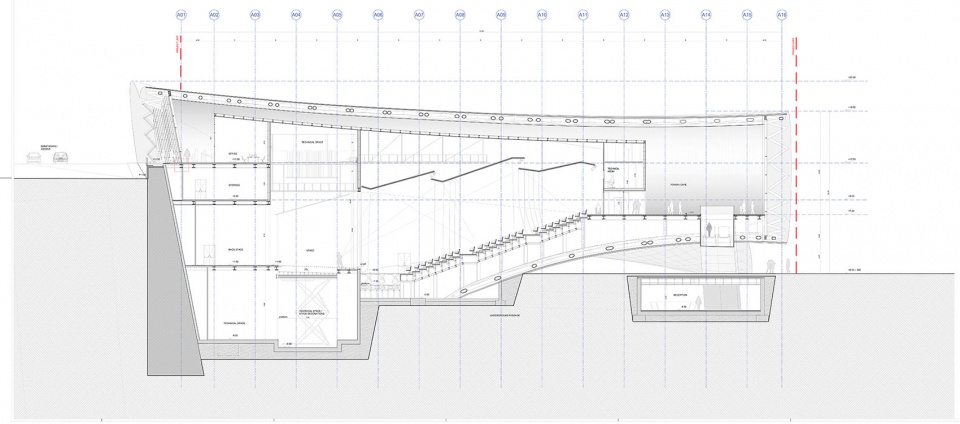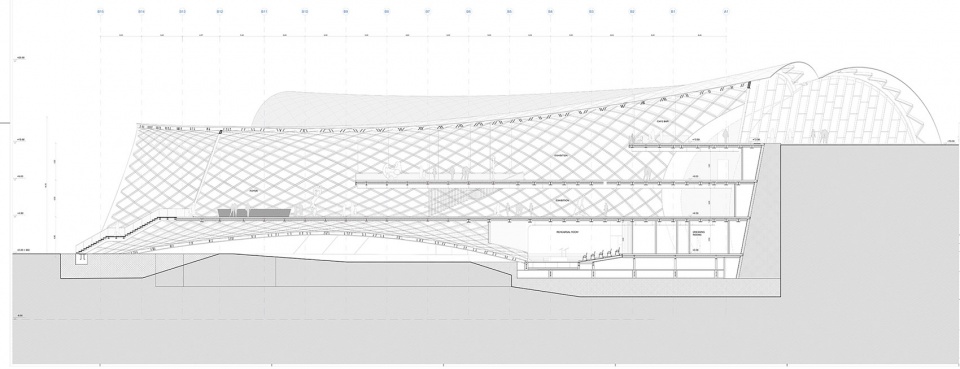 ▼展厅剖面,section of the exhibition hall ©Fuksas