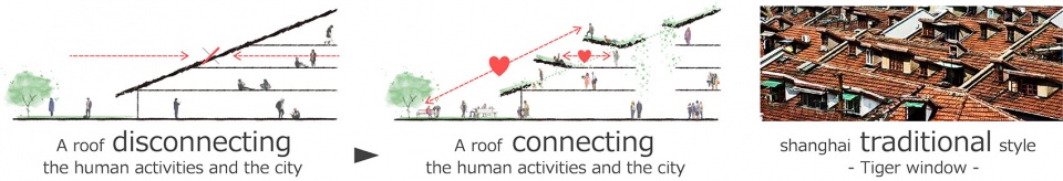 ▼屋顶连接城市活动和上海传统,A roof that connects city activities and Shanghai tradition ©日建设计