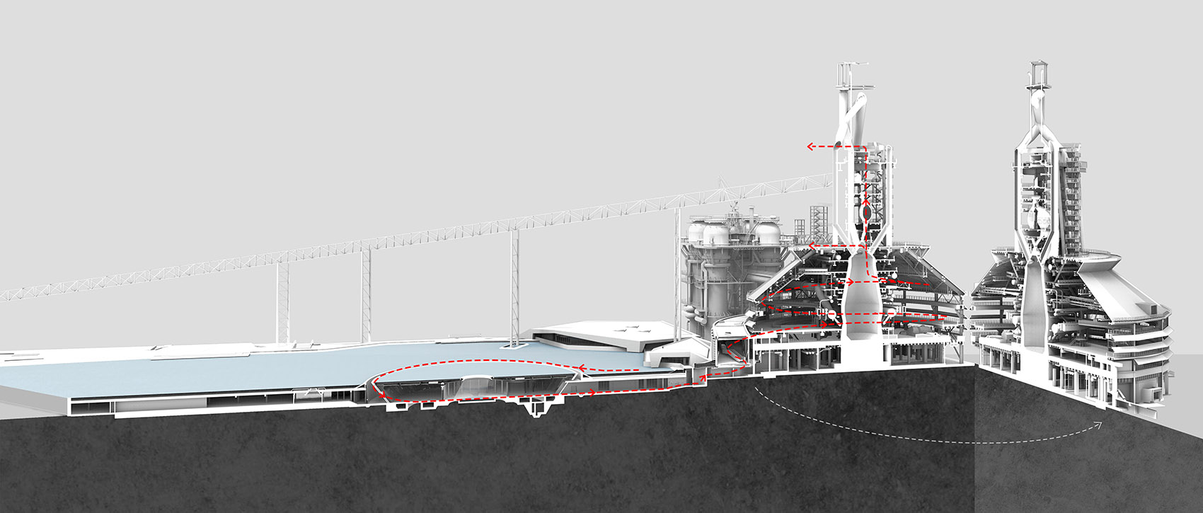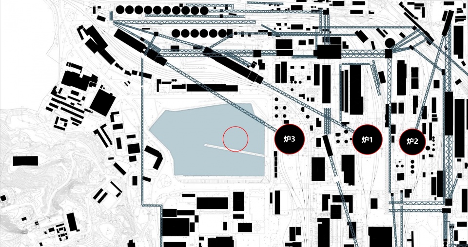 ▼三高炉与水下疏散环的关系, the blast furnace and the safety evacuation ring ©王栋