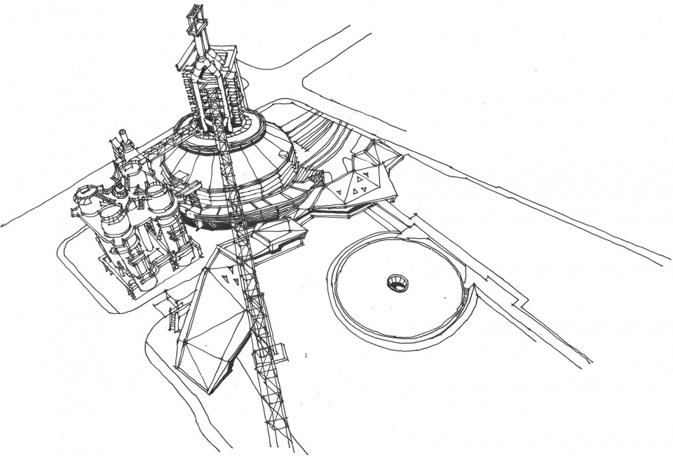 ▼高炉本体平面研究手稿,blast furnace analyzing sketch ©筑境设计