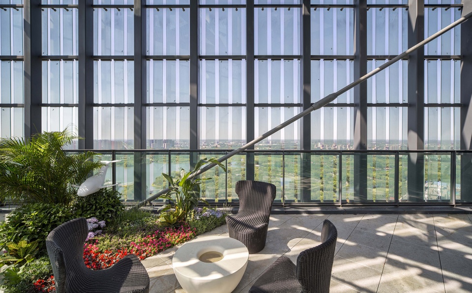 ▼办公塔楼中的通高空中花园,double-height sky garden in the office tower ©Vanke